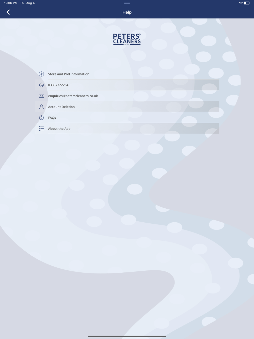 - Quickly contact Peters' Cleaners by phone or email and access their website all directly from your device.