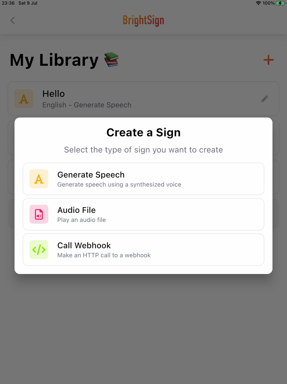 The all-new BrightSign companion app, featuring a completely fresh UI, nearly 1000 different voice language, accent, gender and age options, and multi-library support.