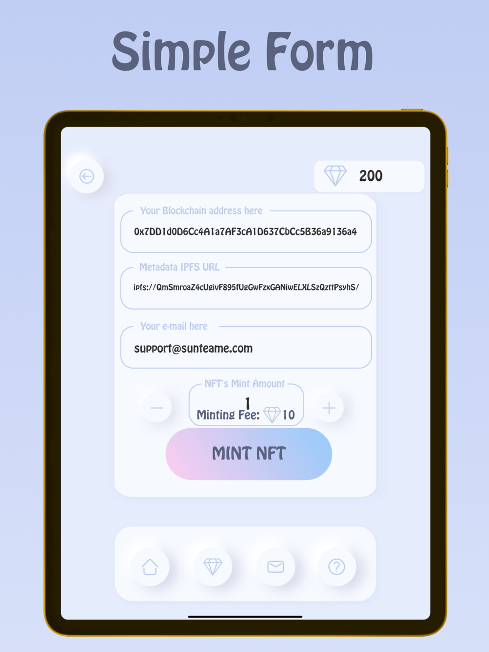 The NFT Minter is an easy way to create your NFTs on the Polygon blockchain. All you need to do is fill out a simple form with your personal blockchain address, an IPFS URL for your NFT metadata, and an email address to notify you of the minting process.