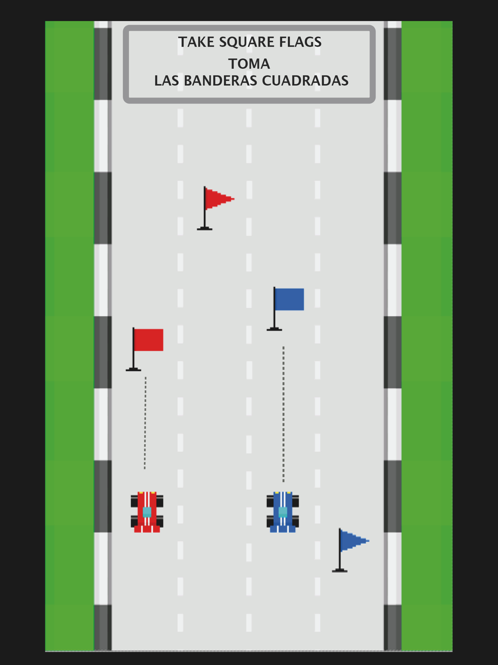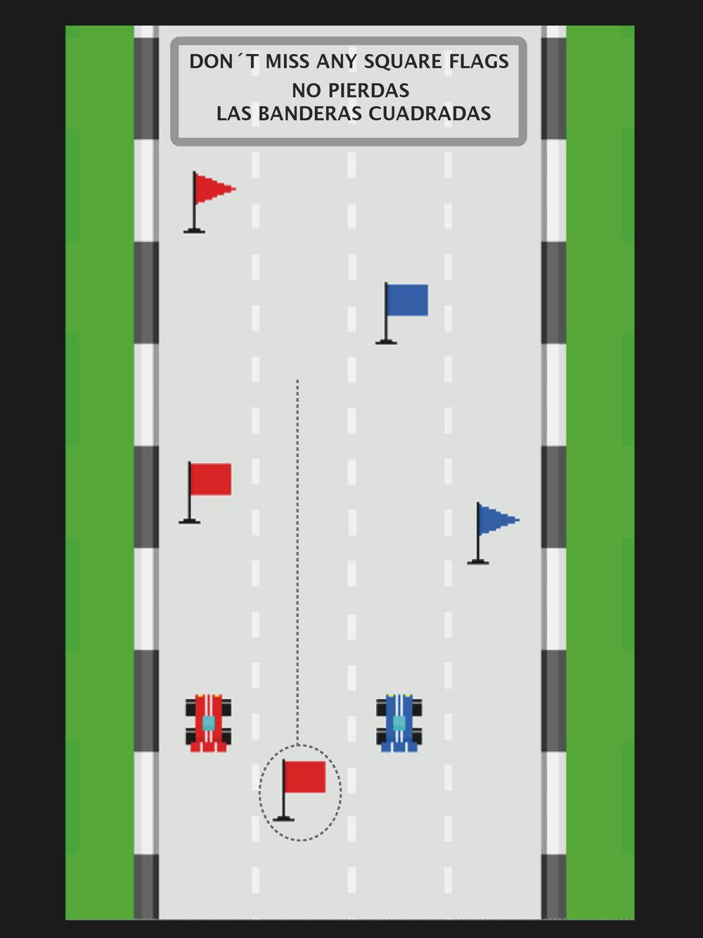 In this universe, there are two types of flags, Square and Triangule. You only have to take the Square Flags to be able to advance to infinity, do not let them pass.