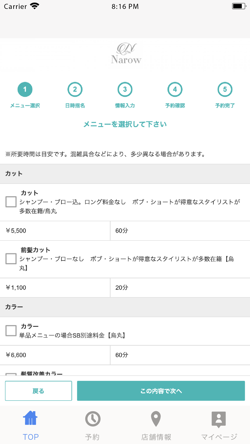 指名予約にも対応しているので担当スタッフのスケジュールを確認してからの予約が可能です。