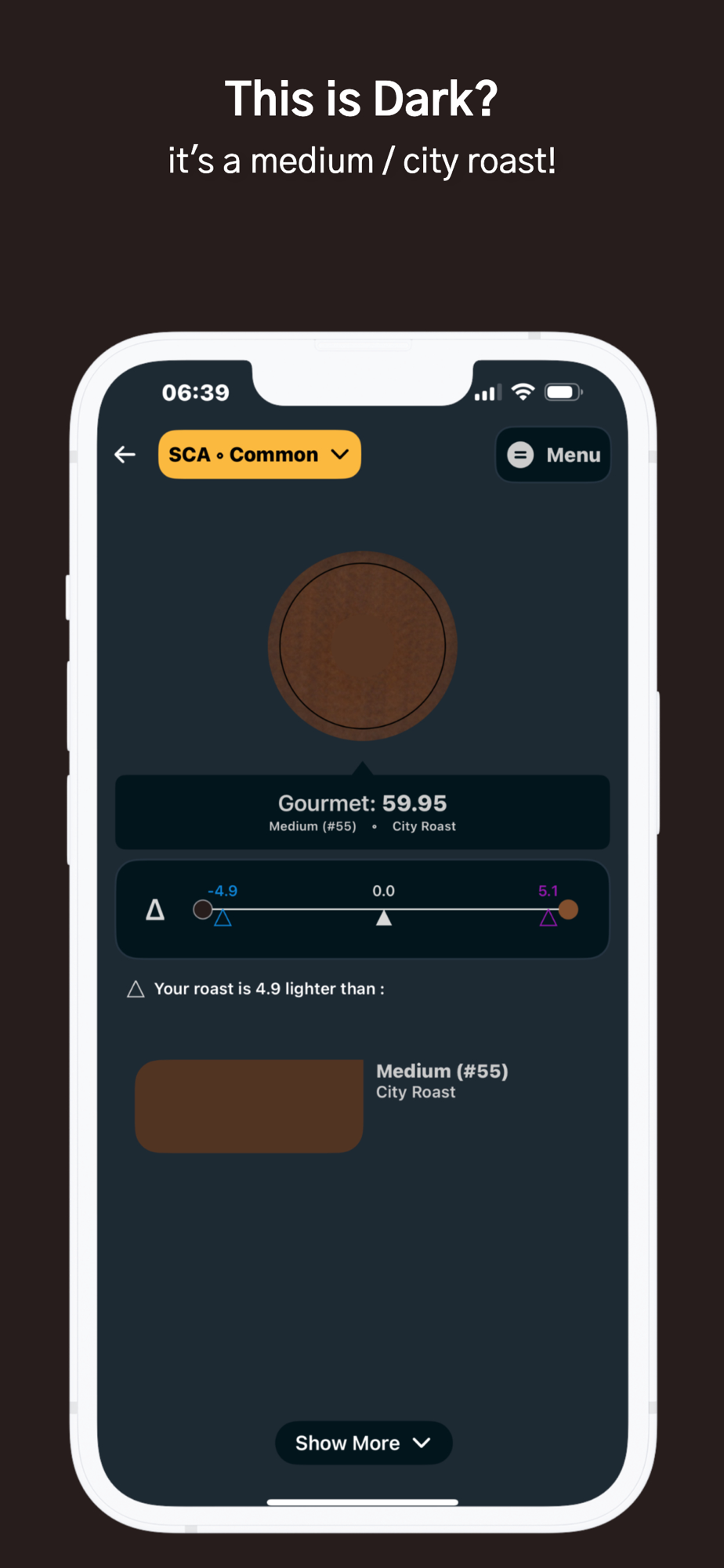 The roast result is compared to our sample roast list or to beans and roasts created by you (Pro Features subscription).