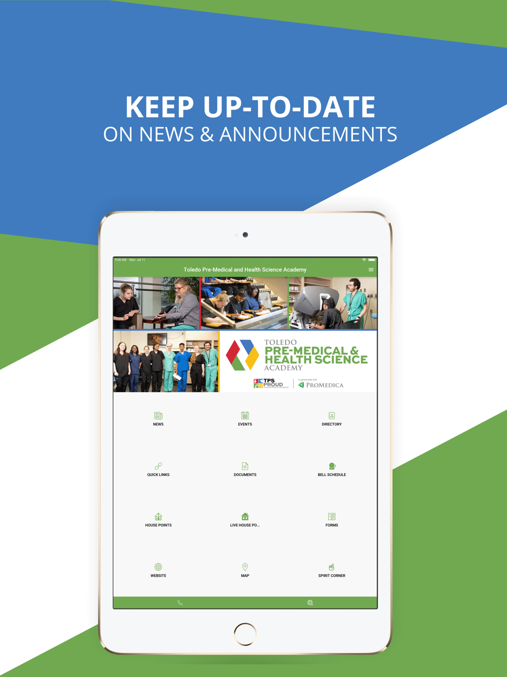 The Toledo Pre-Med HS app by SchoolInfoApp enables parents, students, teachers and administrators to quickly access the resources, tools, news and information to stay connected and informed!