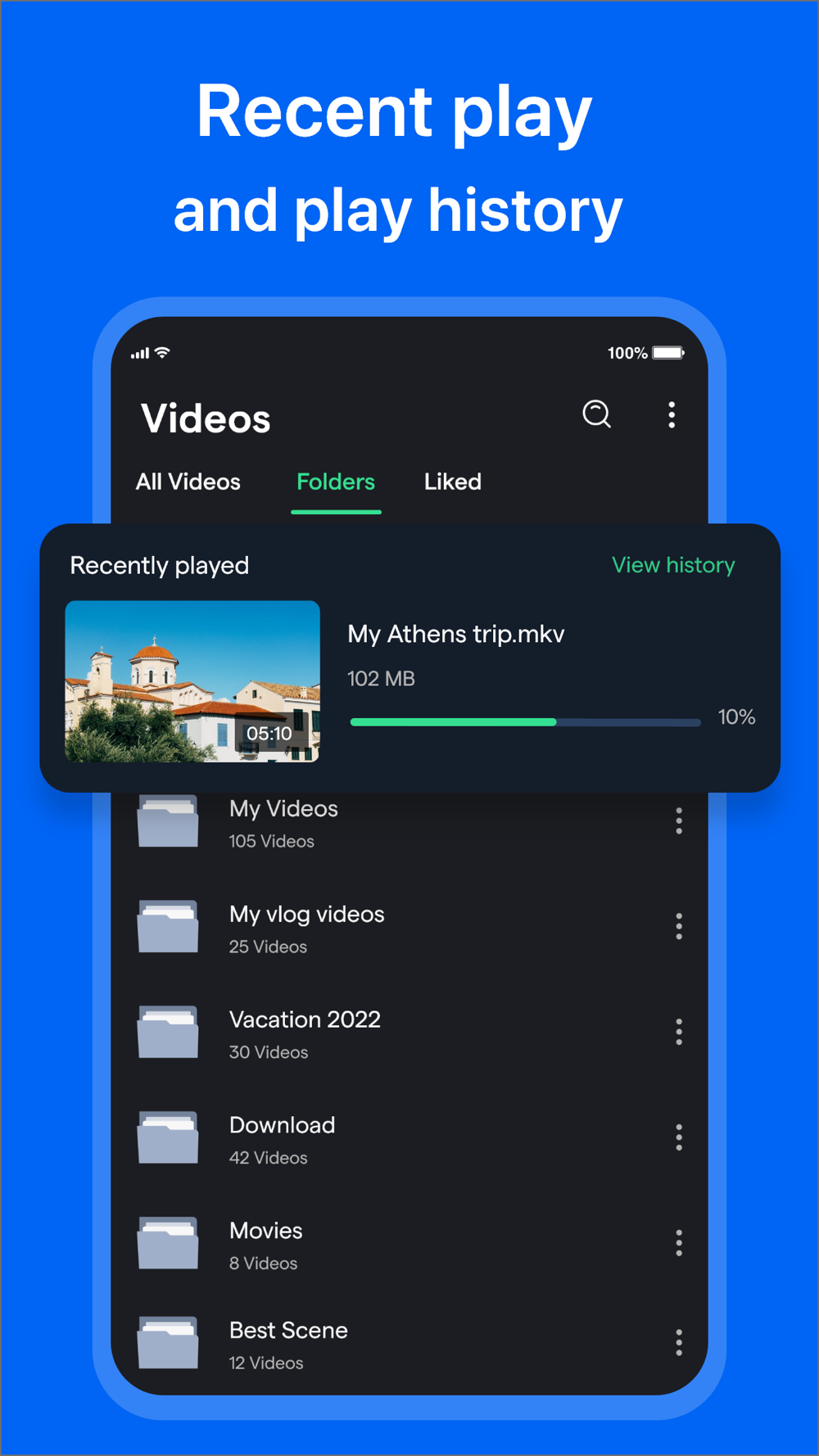 We make a lite video player to occupy less memories and provide the best video-watching experience in video lite. It scans your phone's videos and makes it easier to manage the videos. It keeps your video playing progress and resumes the video's previous progress.MX Player HD is a high-quality video player. the HD media player supports all popular video formats, including MP4, MKV, 3GP, AVI, FLV, M4V, MOV, WMV, RMVB, and TS. It's an All in one media player.