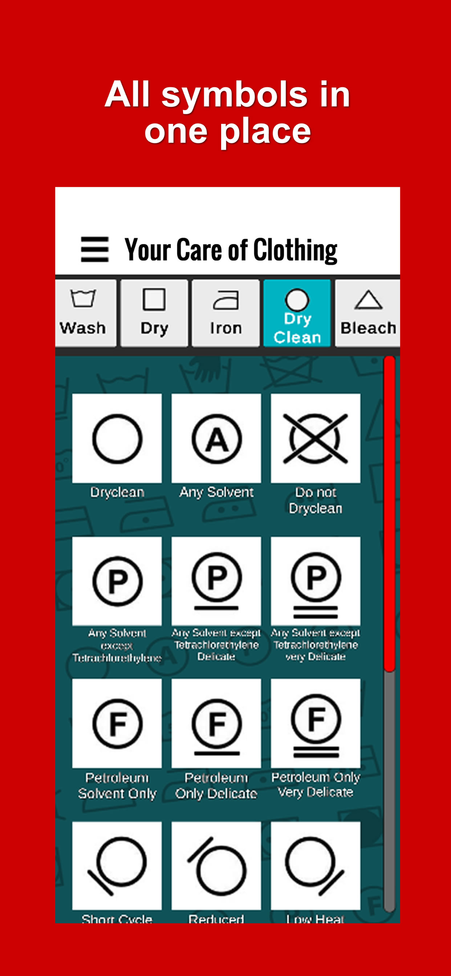 When you go to buy new or used clothes, when you go to the laundromat or dry cleaner, you will be able to better understand the symbols and interpret what they mean by using this tool, so you will give the exact care that it needs.