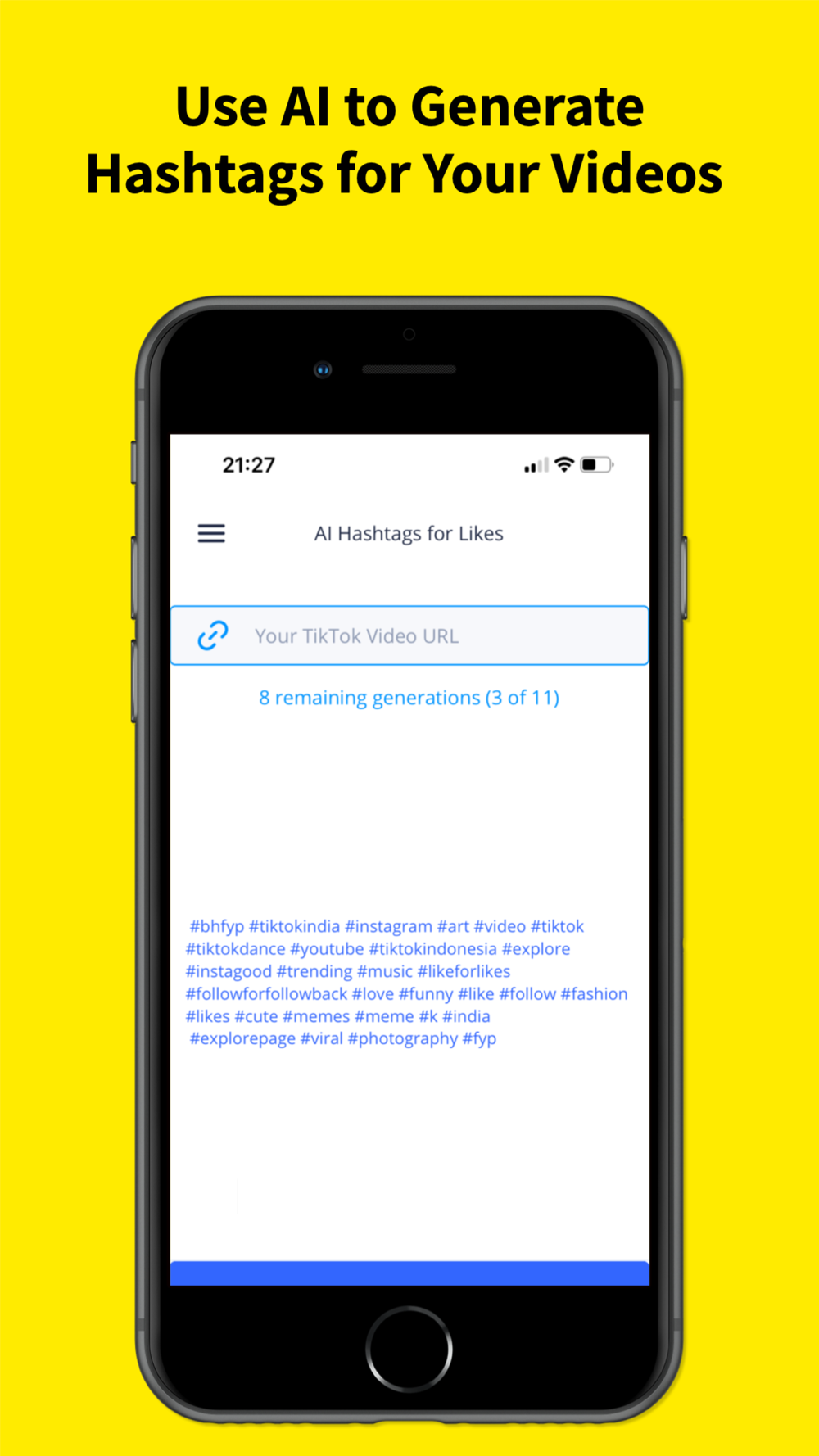 App offers three main features: Collect and bookmark videos, create hashtags for your keywords and create hashtags for your post using our trained AI.