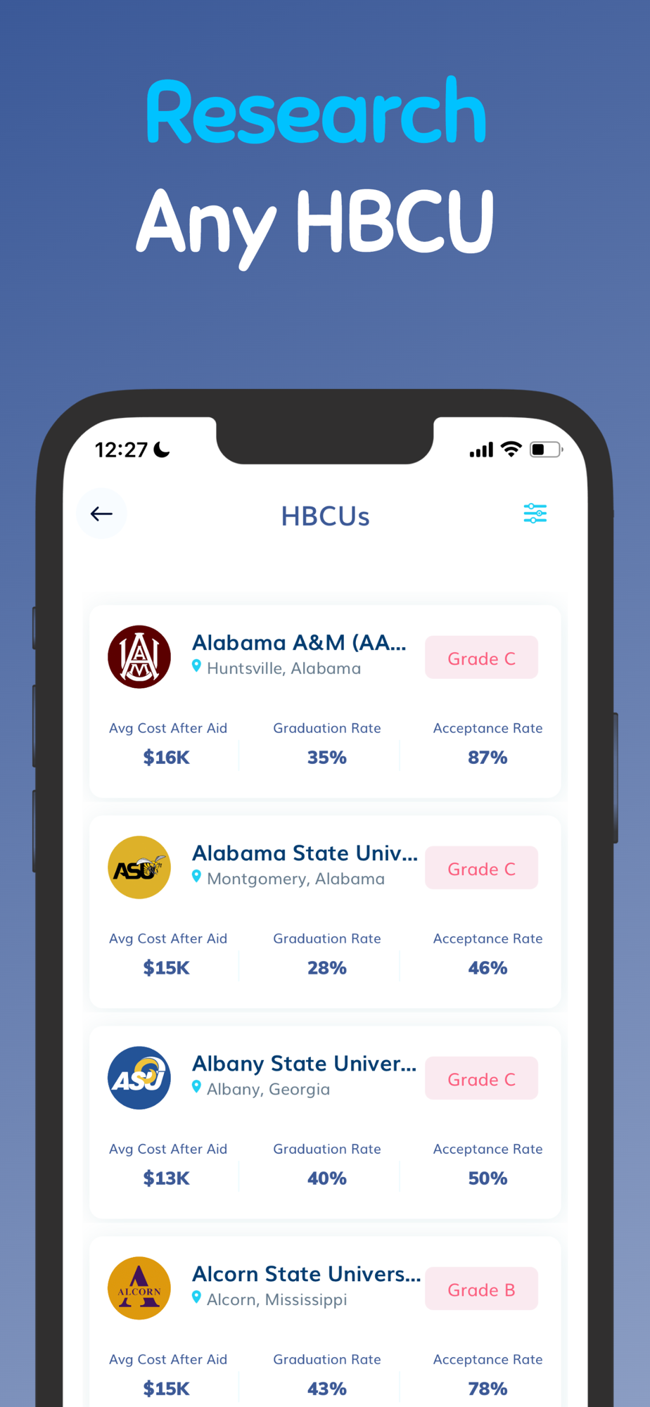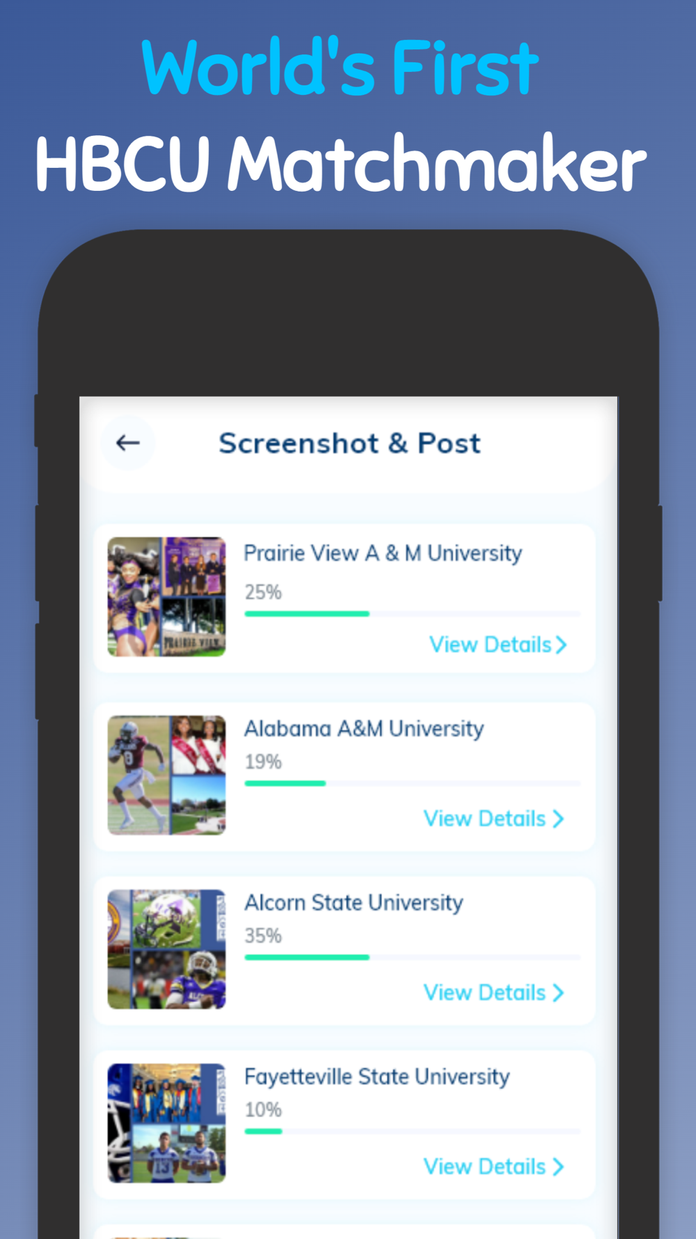 We are the world's first app that connects students to admissions recruiters at HBCUs. The HBCU HUB App makes it easy to compare schools and find the perfect fit based on what matters to you the most. Apply for scholarships, and connect directly with coaches, recruiters, and students for a more personalized experience as you prepare for the next step of your academic journey!