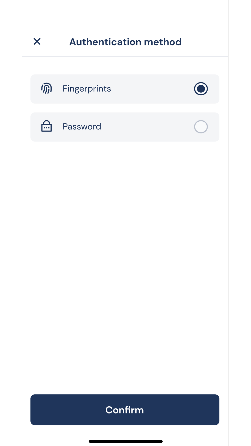 4. Select your authentication method : login + password and/or biometric.