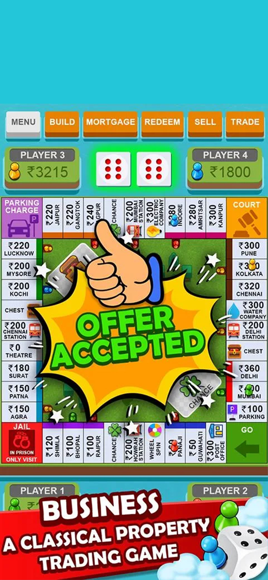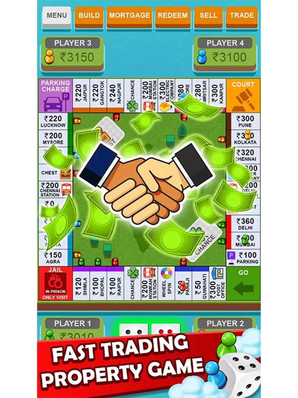 This is game of business simulation.you will business by sell and buy Properties like builds houses, acquire land , hotel ,junction, make deals, win auctions and jail. Build your house or hotel, earn an income and bankrupt opponents & become monopolist.