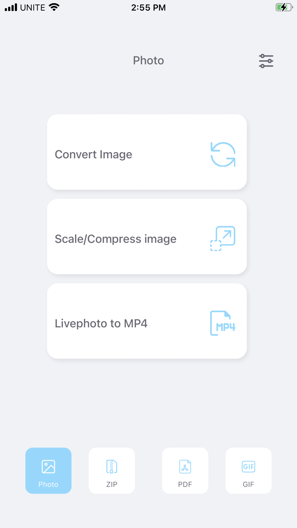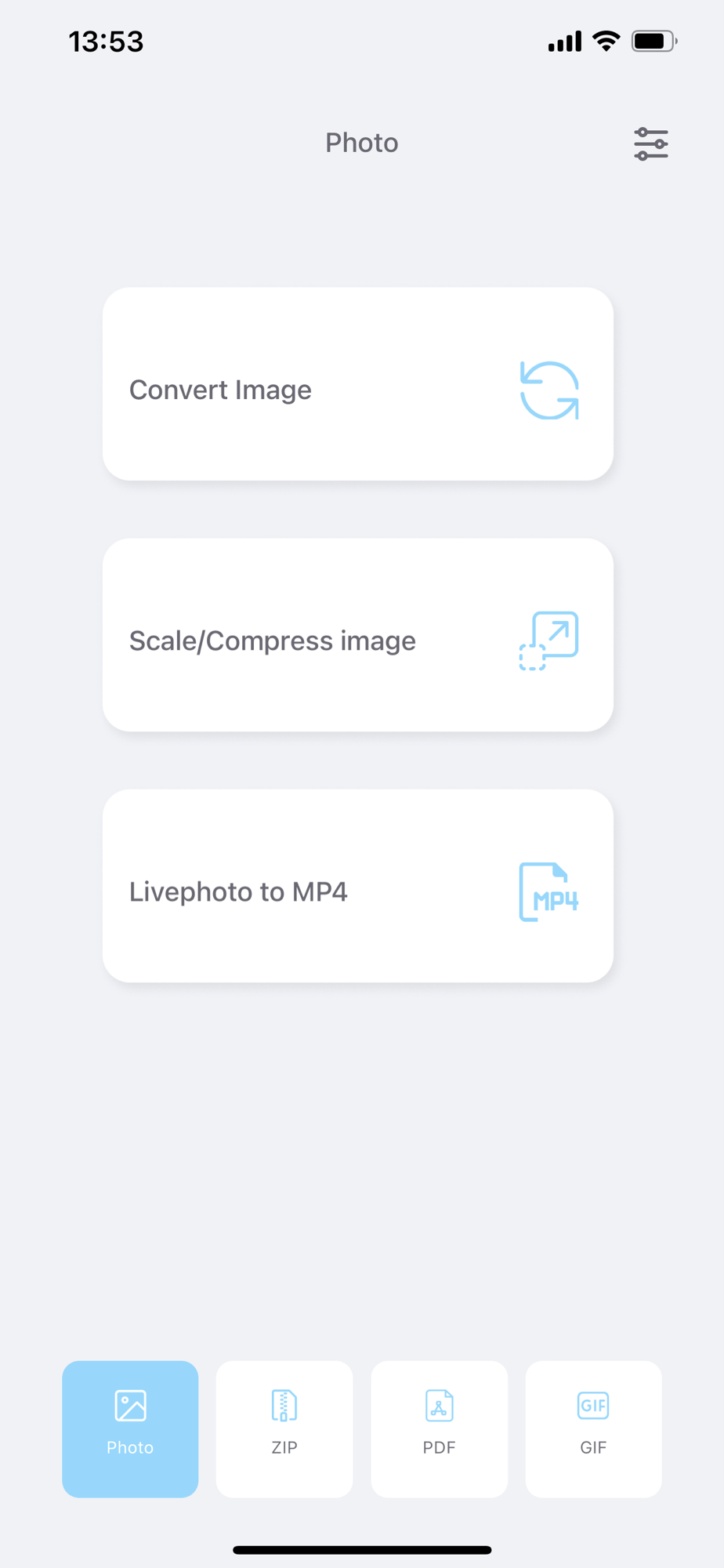 Export photo to PDF. Convert and resize JPG, BMP, PNG, WEBP, GIF. Compress and extract ZIP files.