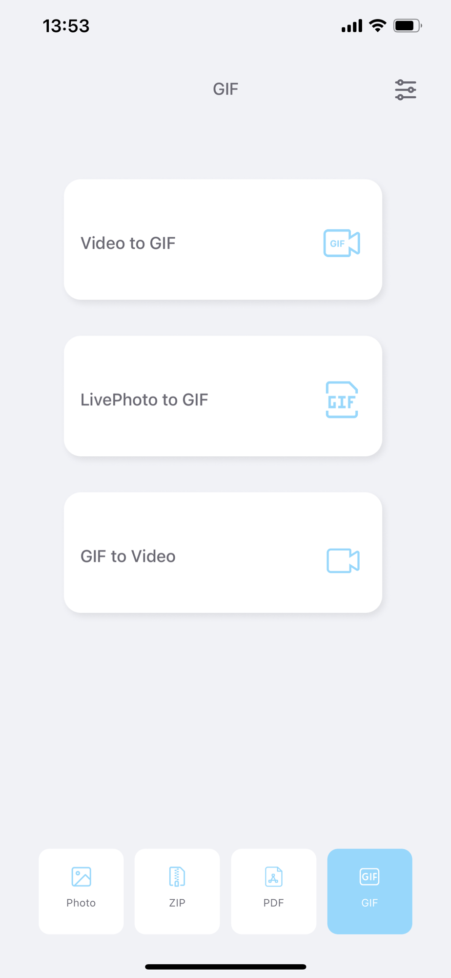 Convert video and live photo to GIF, GIF to video, live photo to MP4.