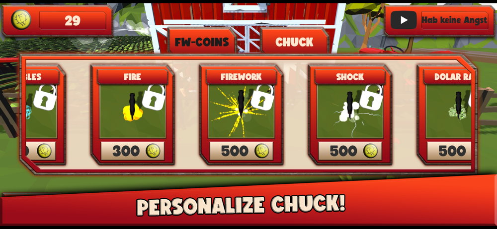 - Collect Frei.Wild Coins to buy new stuff for Chuck!