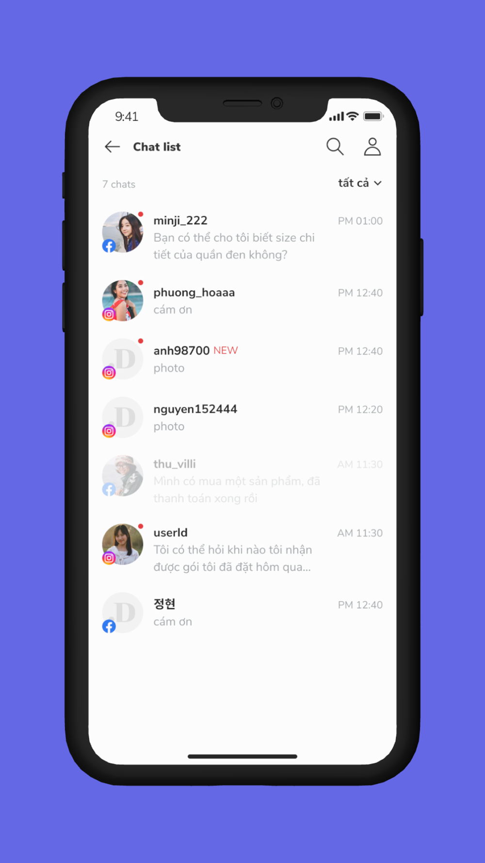 Ứng dụng Dabi chat để quản lý cuộc hội thoại, đơn hàng giữa đối tác của Dabi và khách hàng.