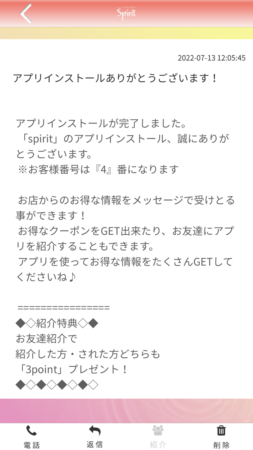 スピリットのアプリをSNSを通じてお友達に紹介する事ができます。