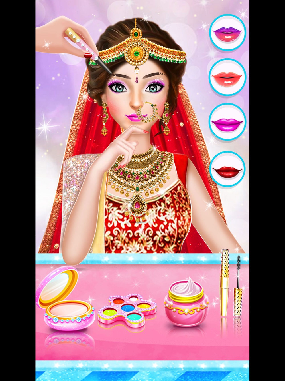 Style the perfect outfit and dress girls up by using thousands of glamorous, elegant and fancy dresses, sarees, and other sparkly accessories in your fashion spa in makeup games & dress up fashion stylist Indian wedding games. In addition to chic hair and makeup styles, you will find our diverse array of models to create looks for various styling challenges such as photo shoots, cocktails and red carpet fittings.