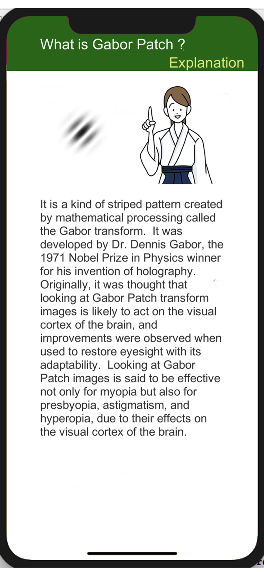 Gabor patch images that have become a hot topic on TV and books. This app is a puzzle game using Gabor patch images. It is also ideal as a time-killing game in your spare time.