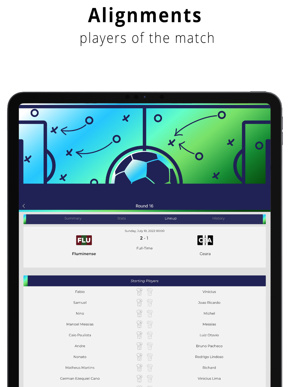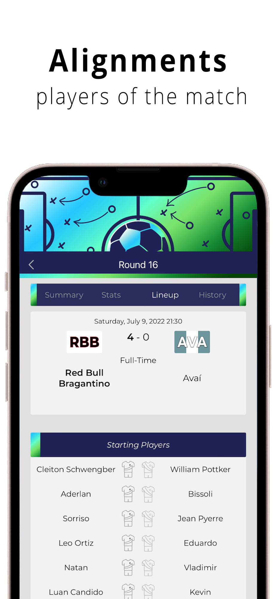 - Check the line-ups before the start of the match.