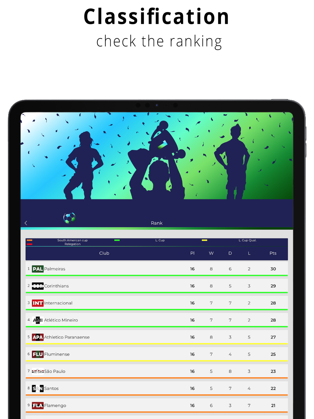Follow Brasil League ! Results, ranking, notifications and much more.