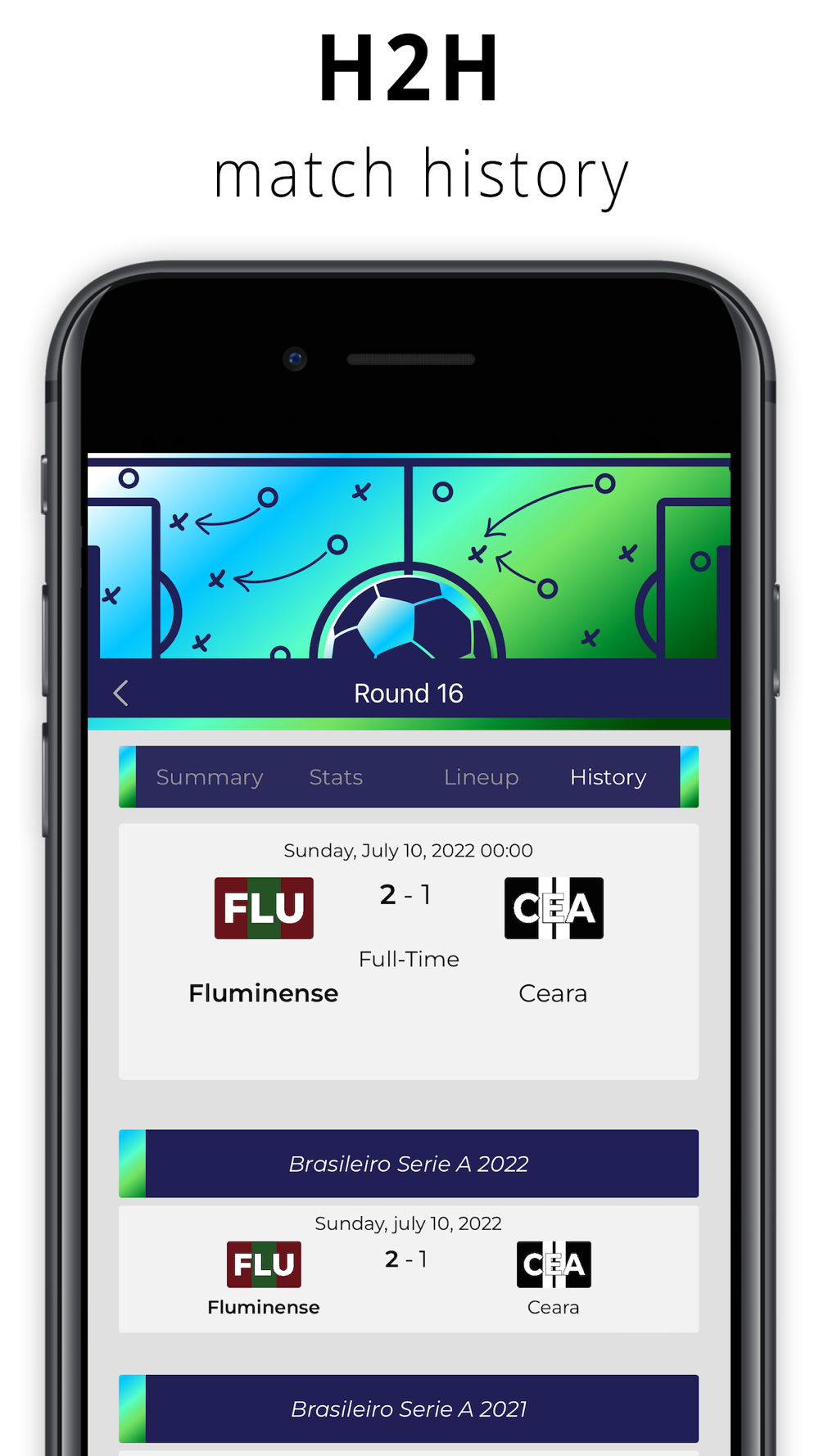 You will see the results and events of the matches of your favorite team.