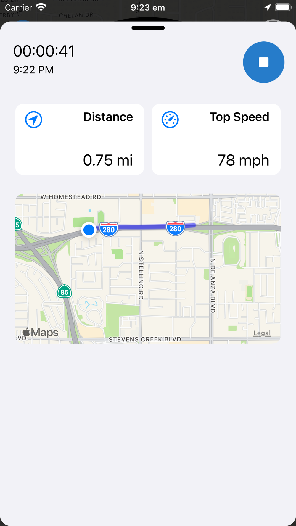 You can also track your route and save these trips with position, distance and average / maximum speed.