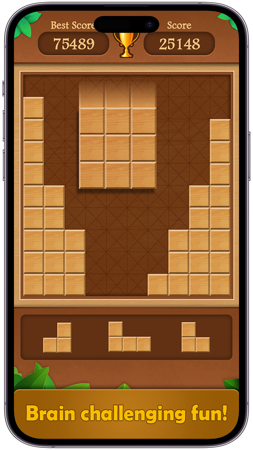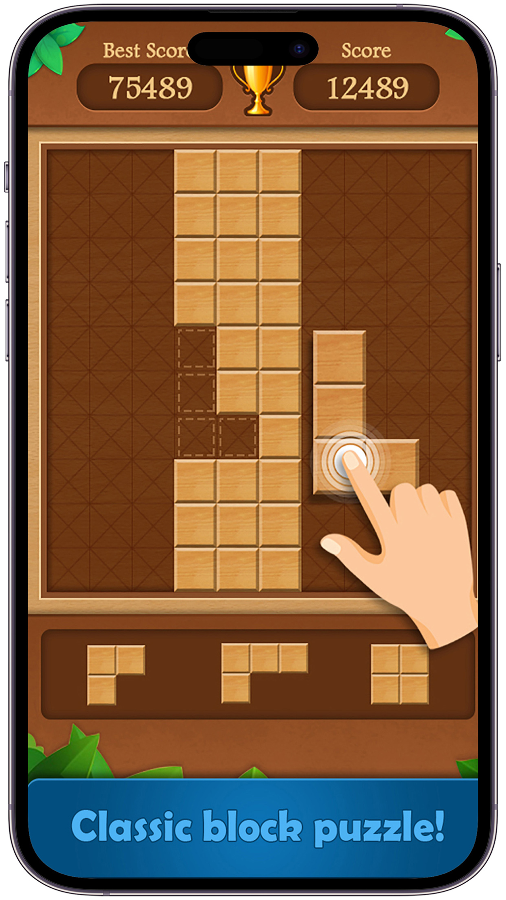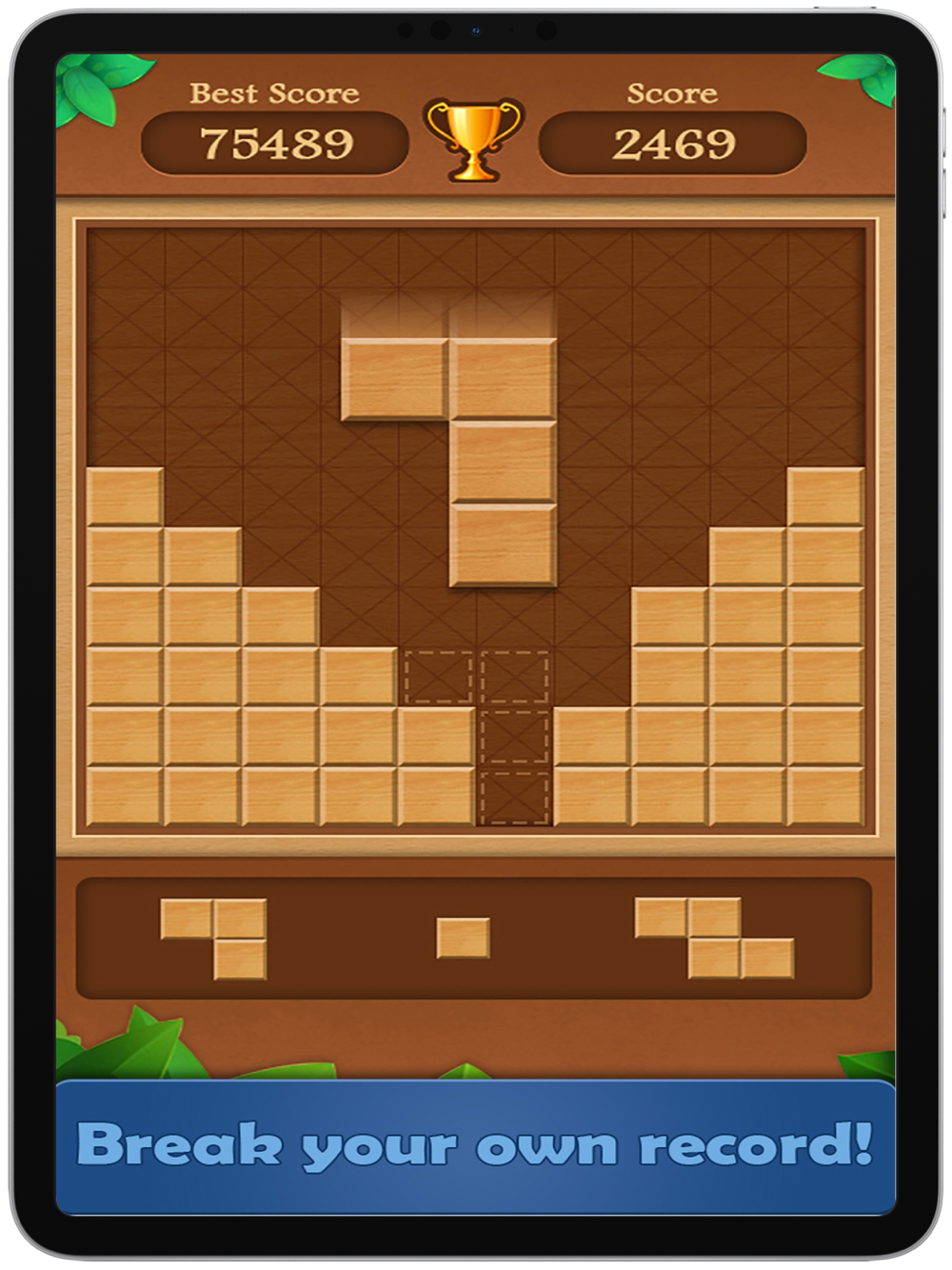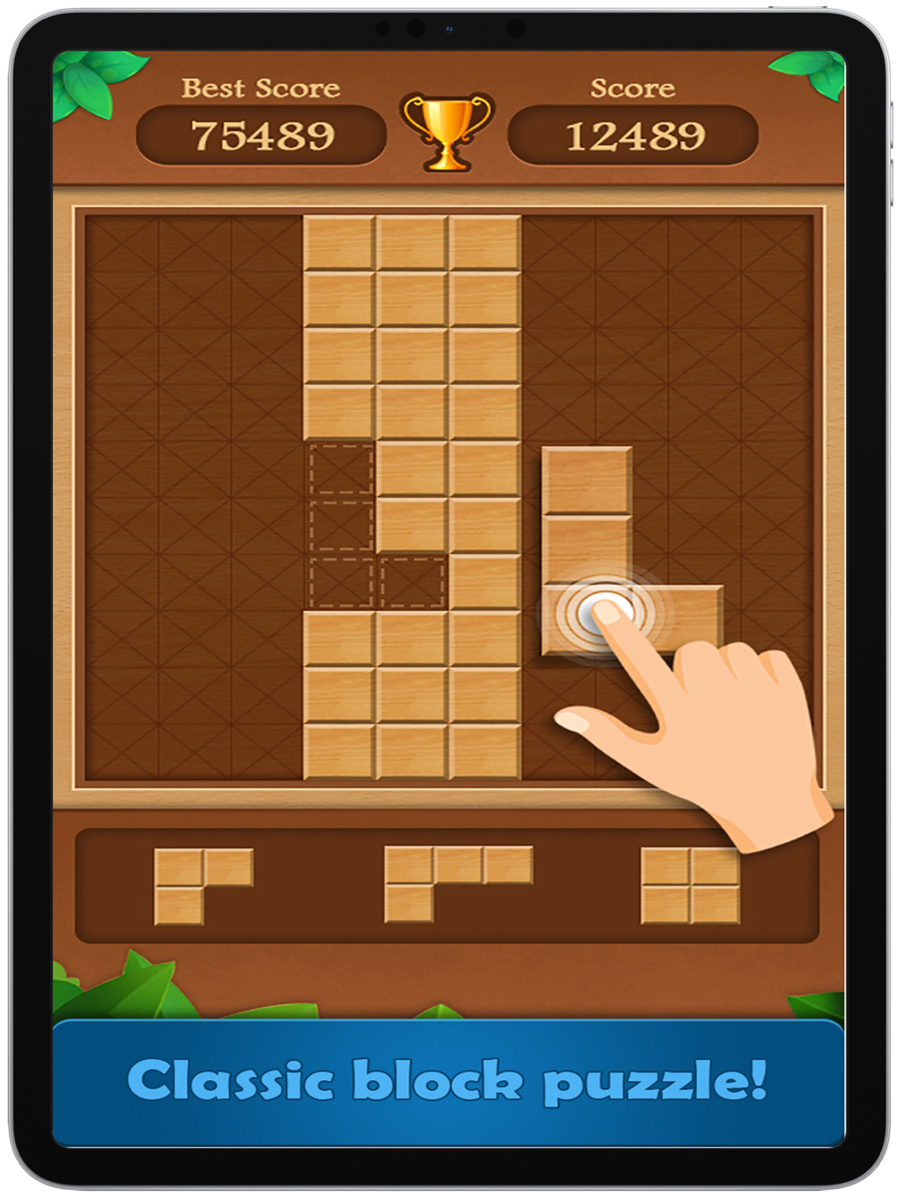 More block, more score. Try it and you will love this Wood puzzle game. The shapes are waiting for you. You have to fill a horizontal line or a vertical line with wood block . When you make a line, it clears from the screen. The more wood cube puzzle you clear, the higher score you will get.