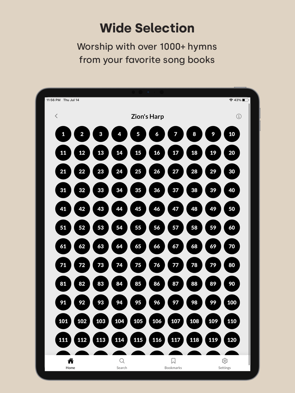 ACC Hymns allows you to sing from the Zion's Harp, Gospel Hymns, Higher Ground and the Junior Hymnal. You can find songs faster by searching or by bookmarking songs.