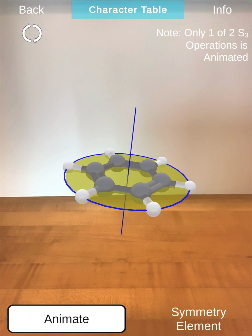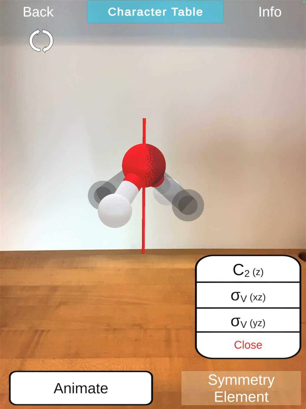 View, animate and interact with symmetry elements of over 50 molecules and test your knowledge of symmetry and point groups with our quizzes. Embedded character tables provide symmetry information at the touch of a button.