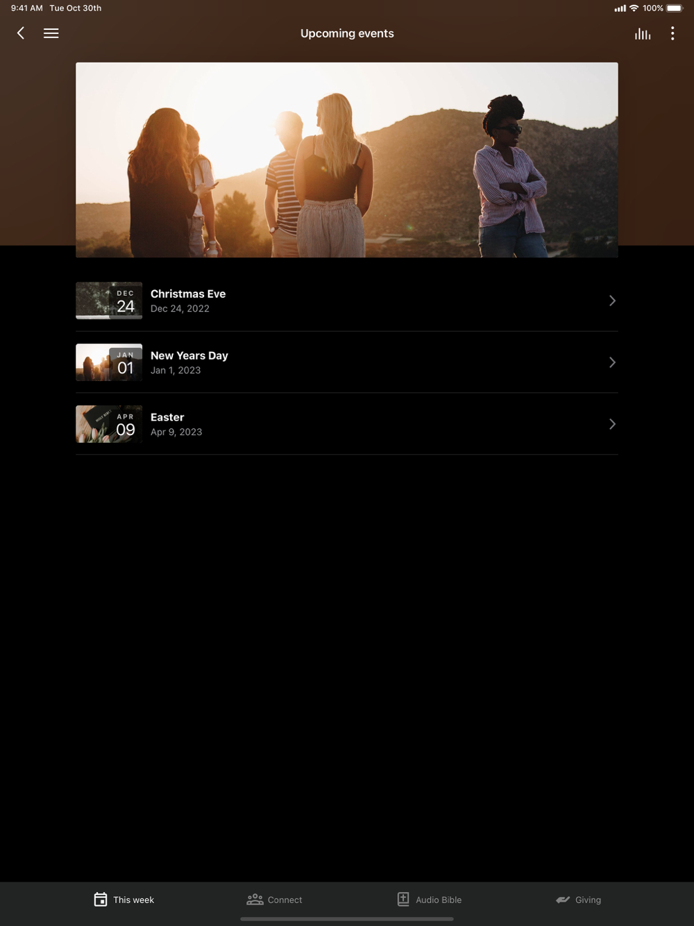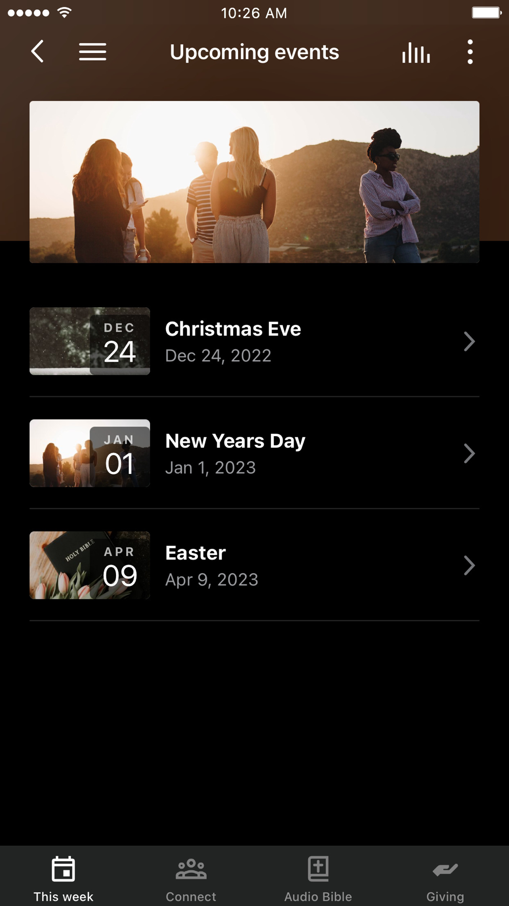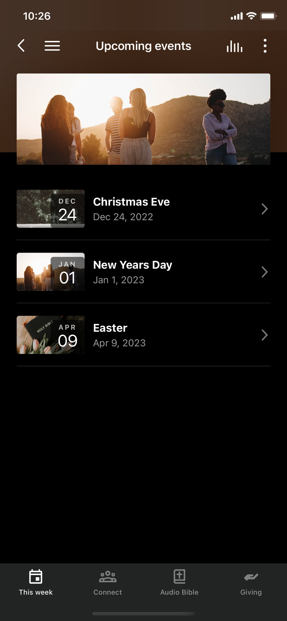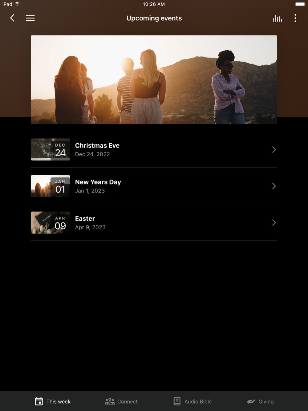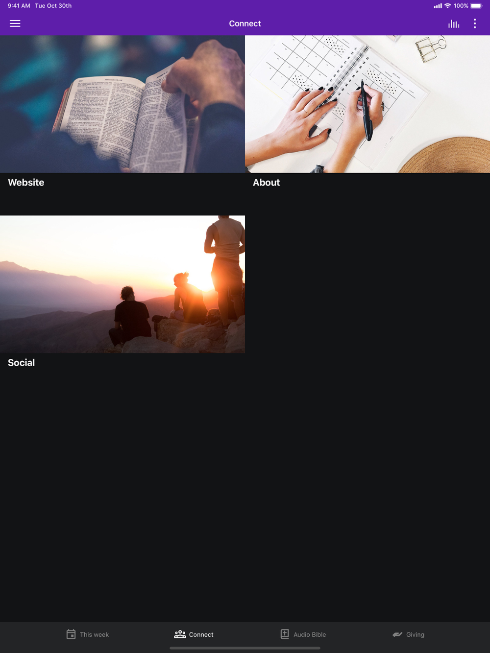 This app will help you stay connected with the day-to-day life of our church. With this app you can: watch or listen to past messages; stay up to date with push notifications; share your favorite messages via Facebook, or email; and download messages for offline listening.