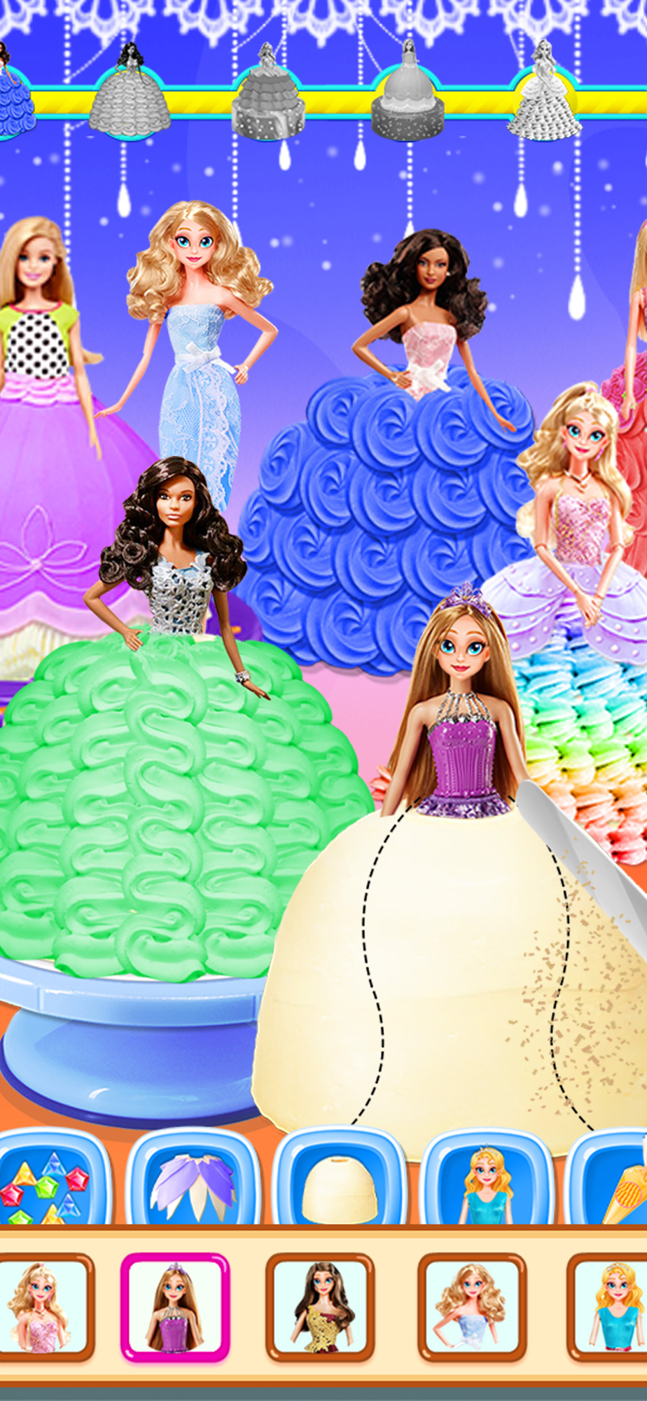 - Princess Cake: Choose the princess you like to make the beautiful princess cake