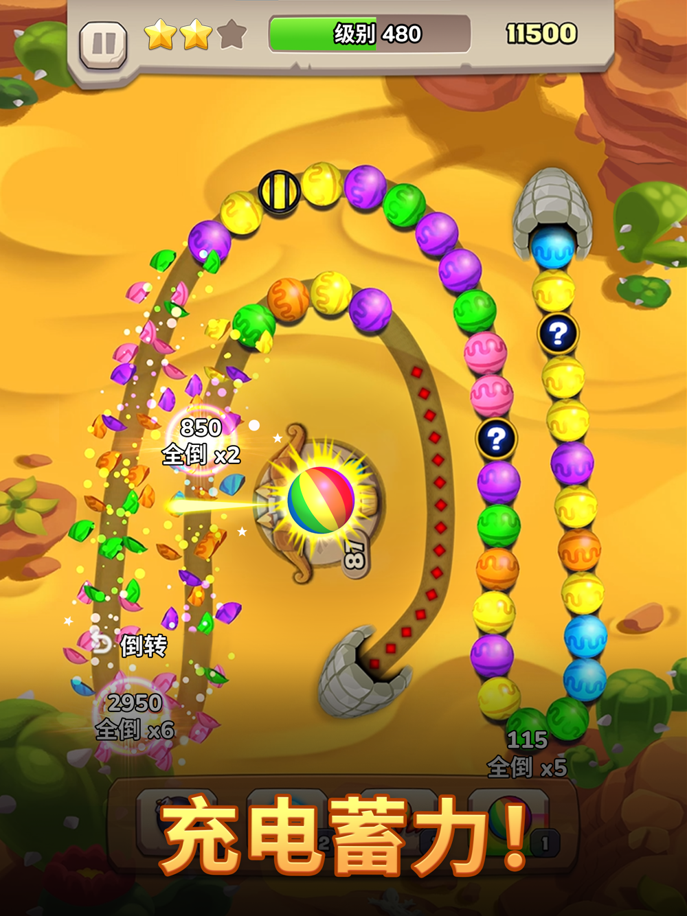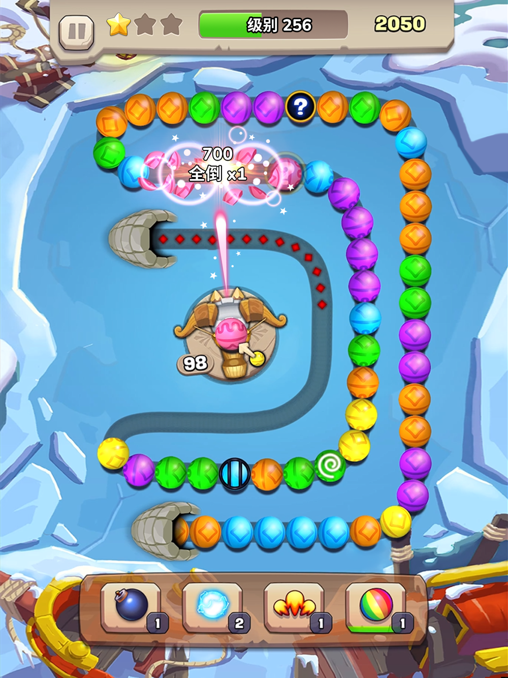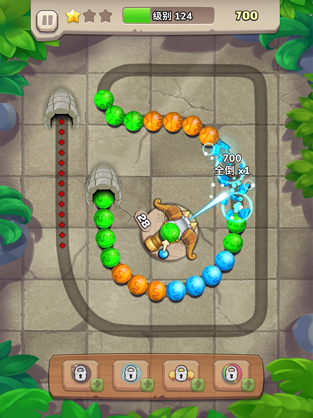 有收集硬币的奖金(通常通过间隙),通过其他球的间隙引起爆炸,以及连续的球总是导致爆炸的连胜(硬币和链条奖金是填充酒吧的快速方法) .如果玩家在 ace 时间内完成关卡,也会获得时间奖励 - 范围从 30 秒到 4 分钟不等,具体取决于级别。