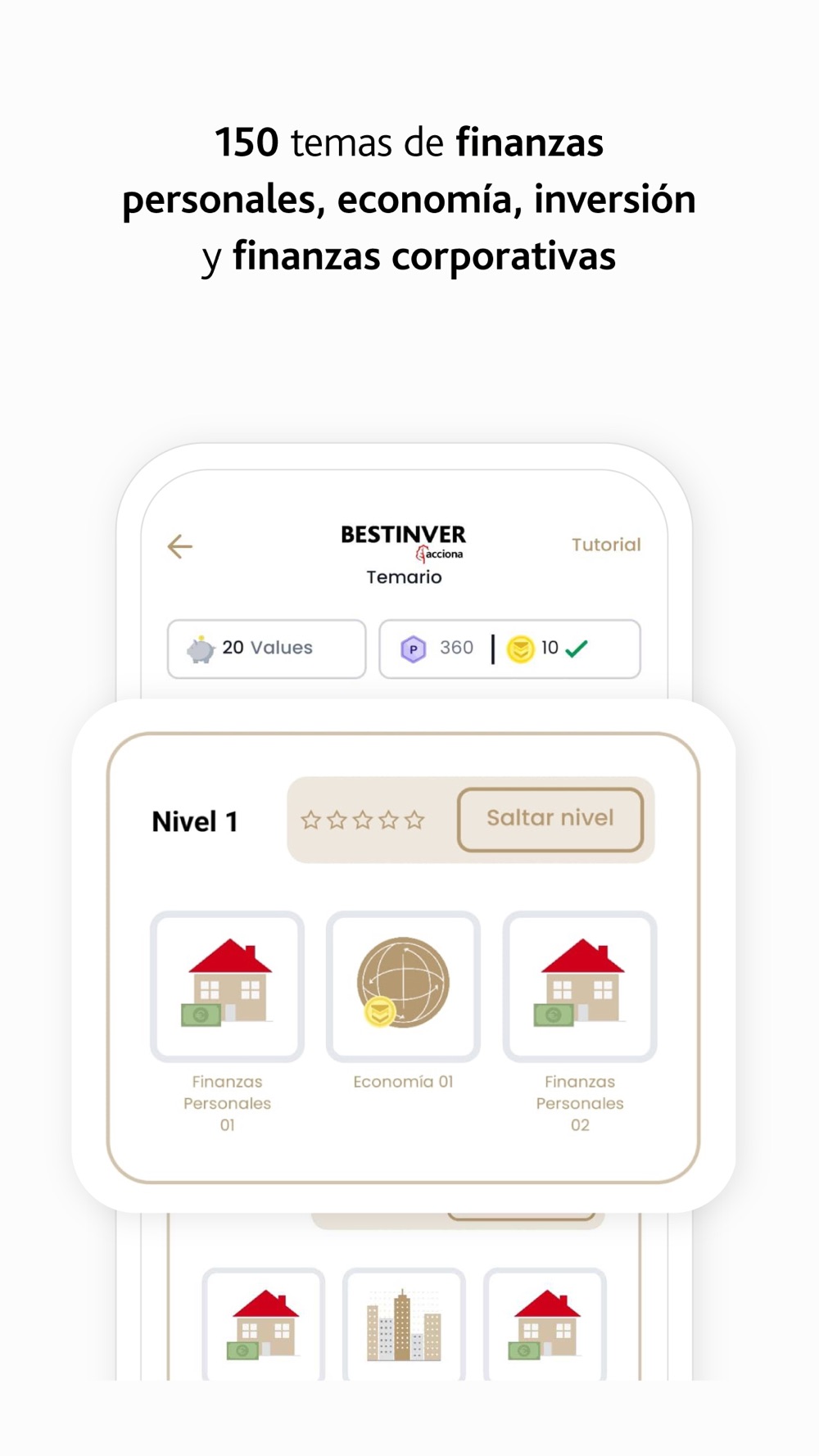 A medida que avances, ganarás “values”, nuestra moneda. Si estás entre los mejores, podrás conseguir una biblioteca de libros recomendada por BESTINVER, para que sigas profundizando.
