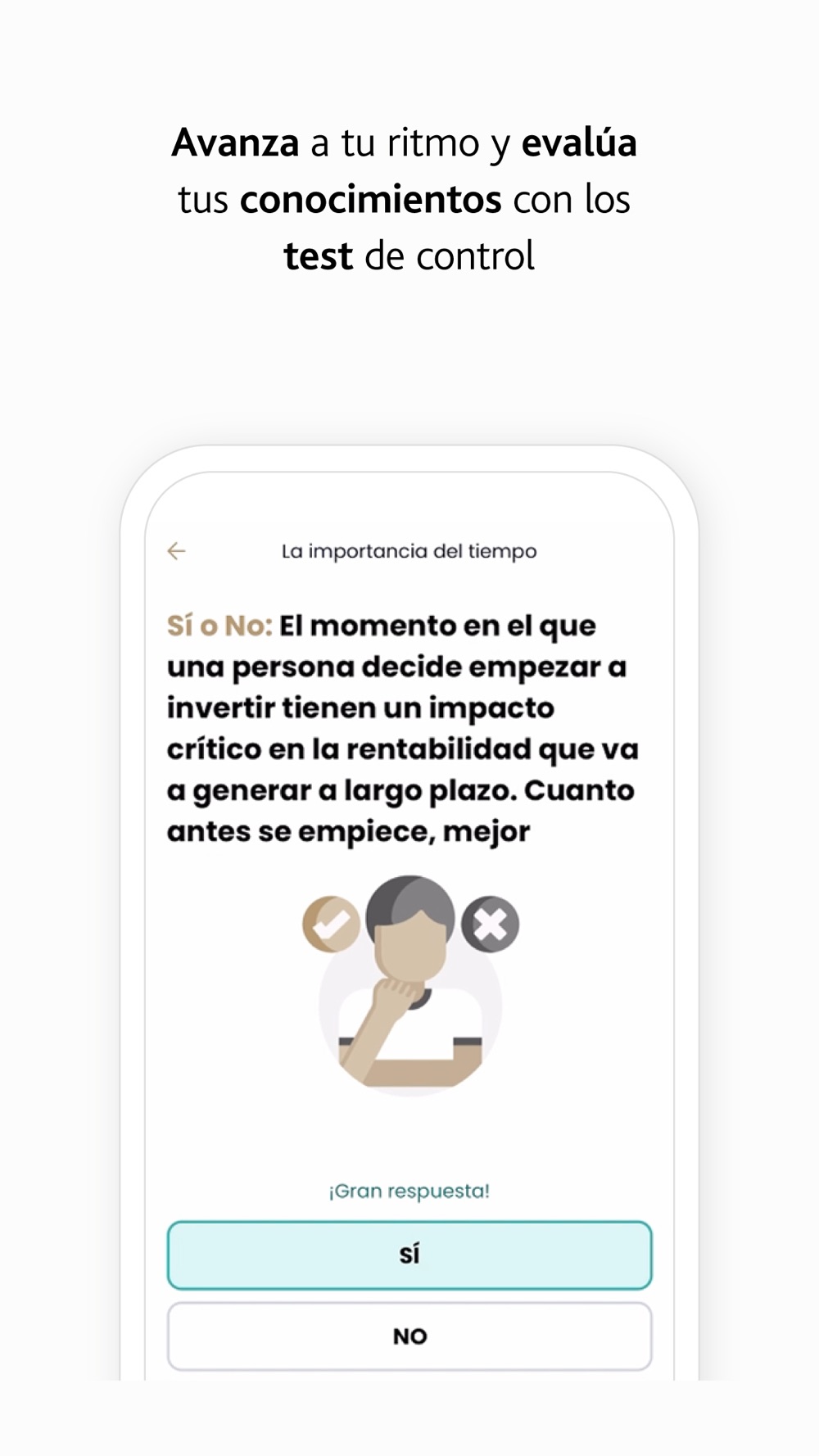 Además, todos los que completen el temario en la app podrán acceder a los cursos online impartidos por nuestro equipo de expertos. Sigue los cursos, supera los test y recibe tu diploma personalizado BESTINVER educatio.