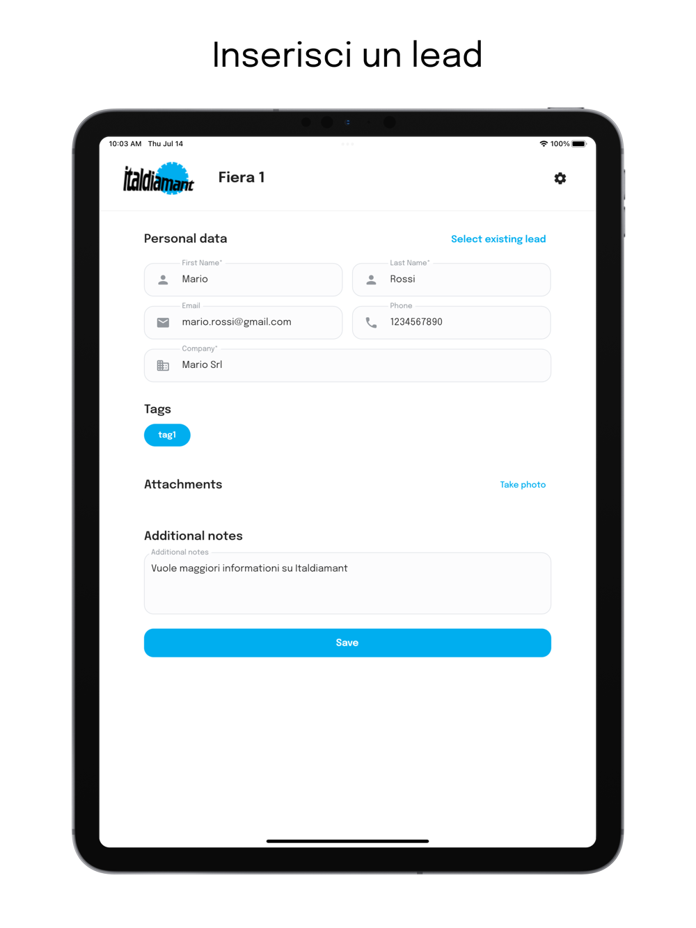 L'app di Italdiamant che permette di registrare gli accessi ad una fiera di nuovi lead o di clienti già registrati
