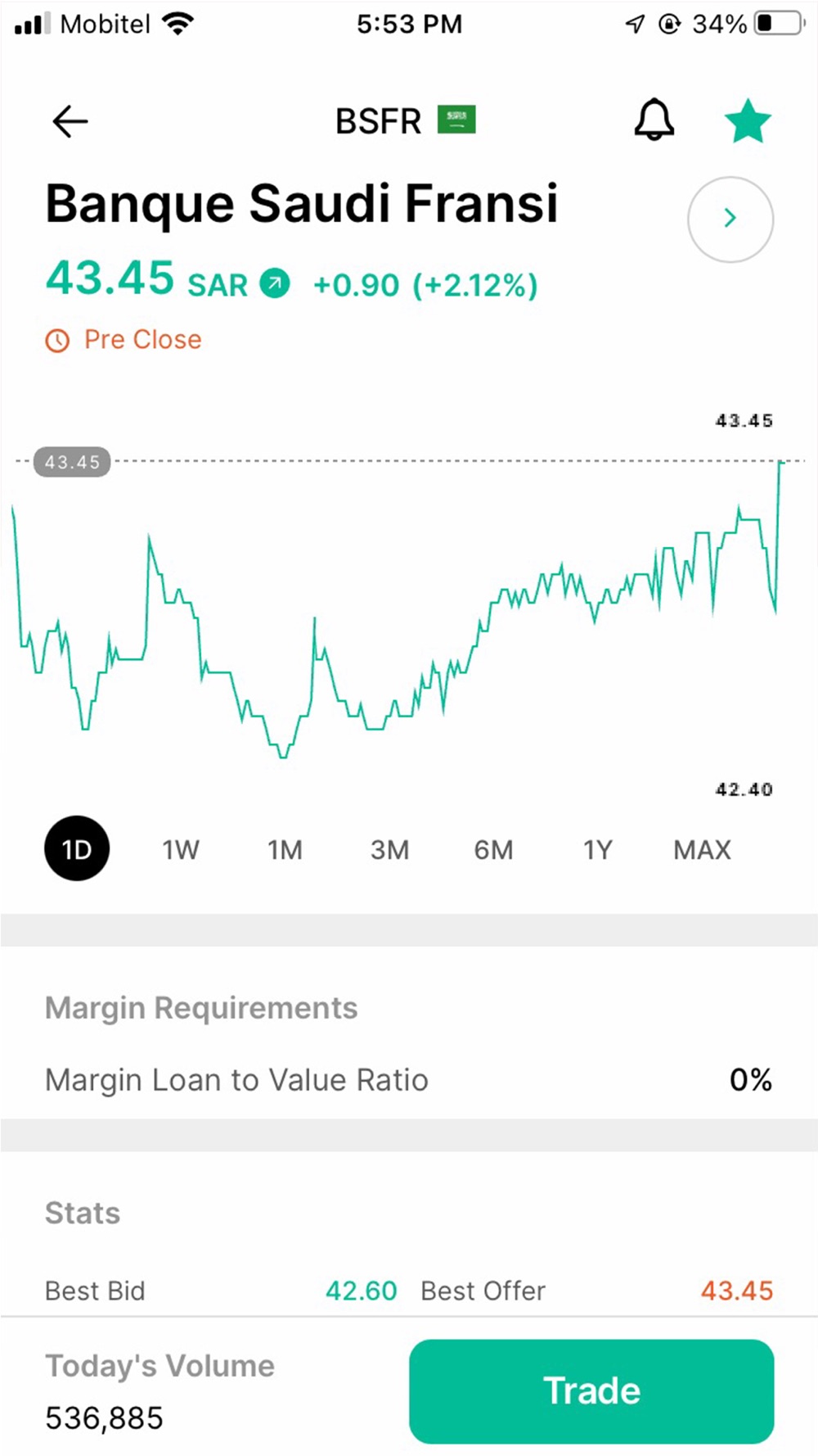• الاطلاع على معلومات الأسواق المالية المحلية والعالمية والمؤشرات والأسهم الأكثر ارتفاعاً / انخفاضاً وأفضل العروض والطلبات*