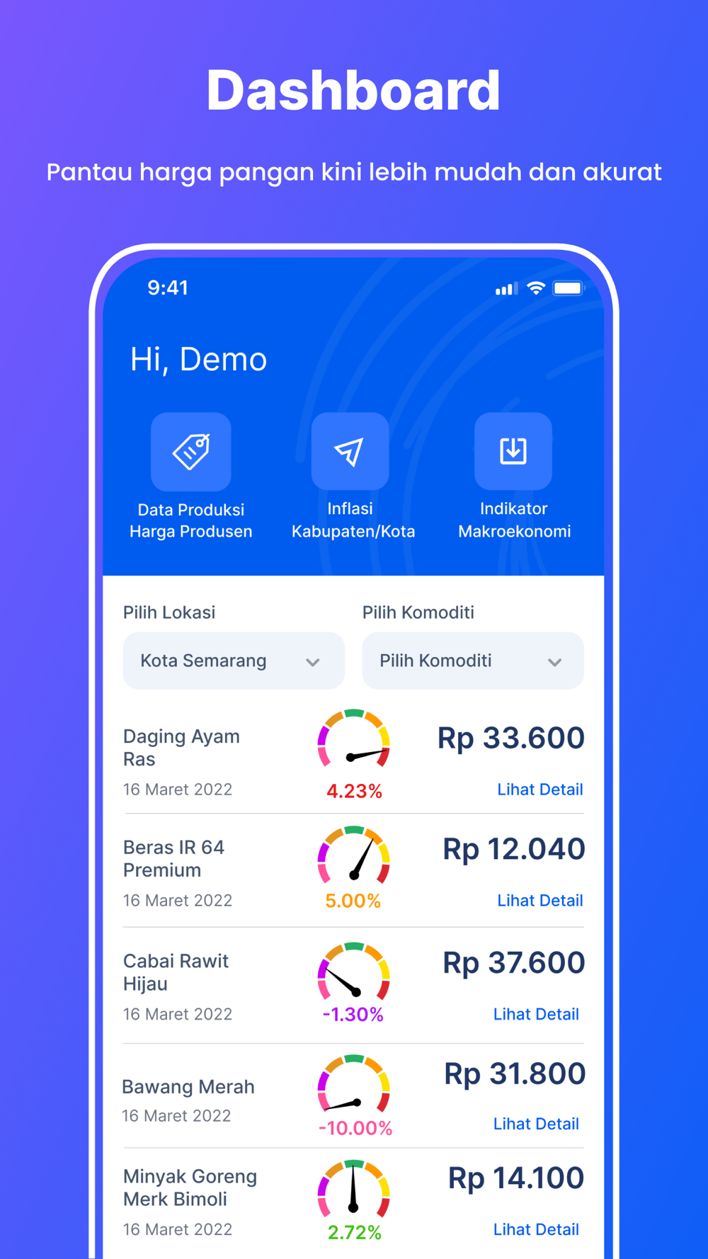 SiHaTi merupakan aplikasi Untuk mengetahui perubahan harga pangan di kabupaten - kabupaten yang ada di province jawa tengah