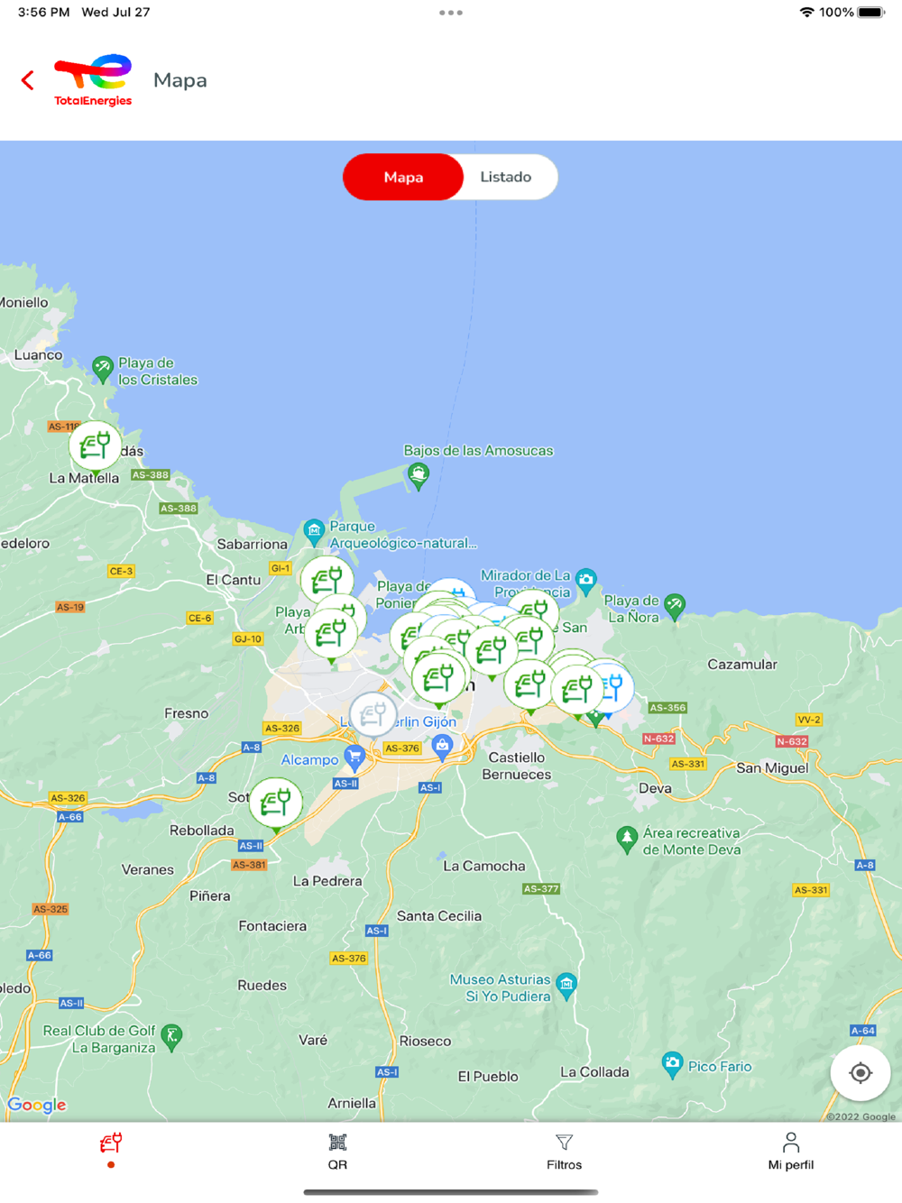 - Ver todos los puntos de recarga de la zona que desees, conocer sus características, tarifas y el estado en que se encuentran.