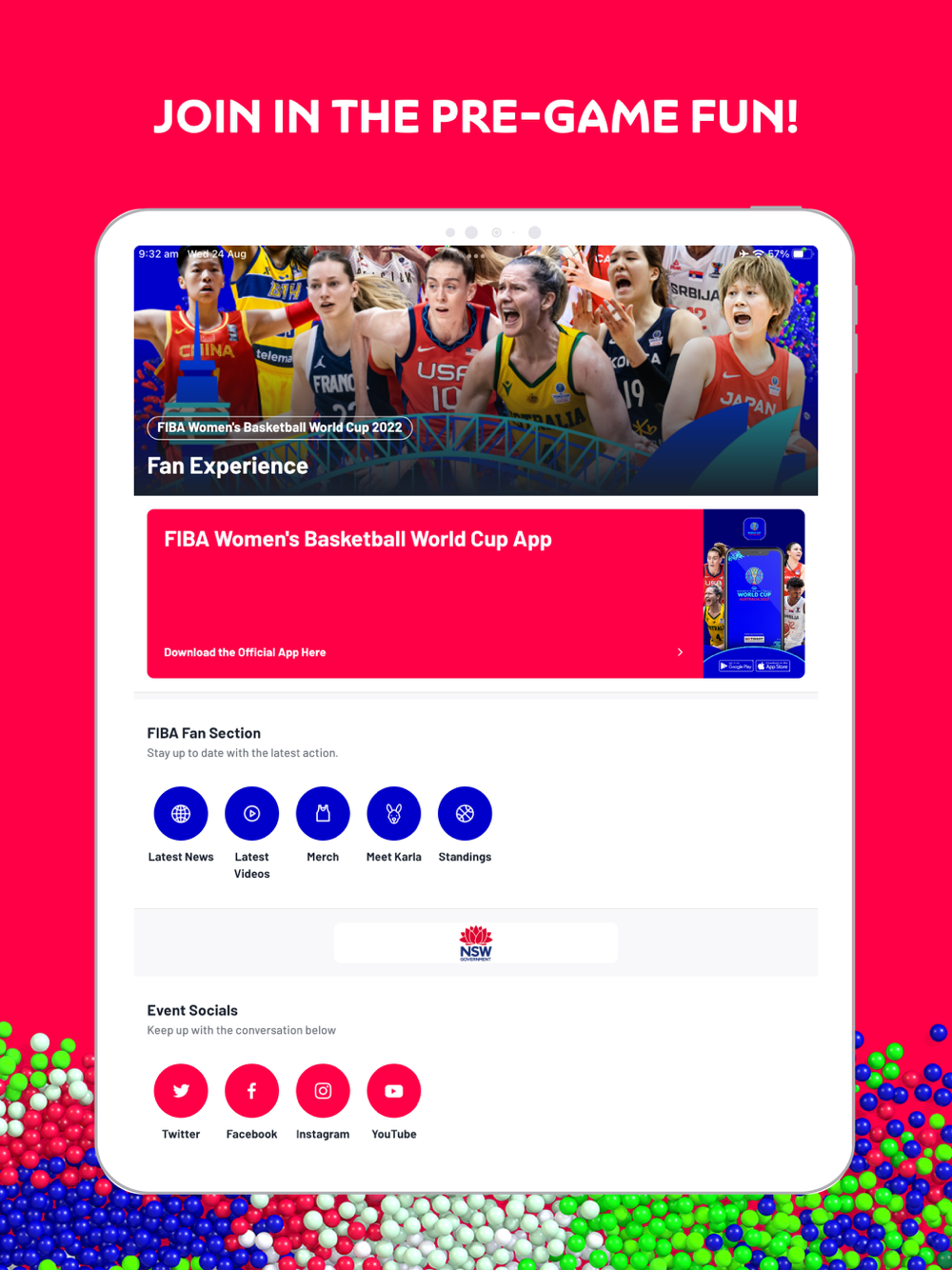 Thank you for downloading the FIBA Women’s Basketball World Cup 2022 Fan Experience App and showing your support for the event.