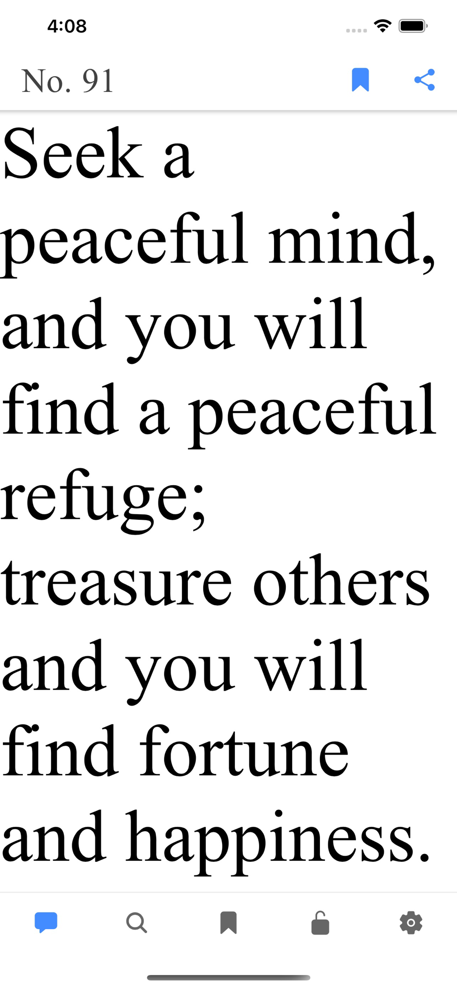 The app supports bookmarking. You can save your favorite wisdom adages helping you lookin up them next times.
