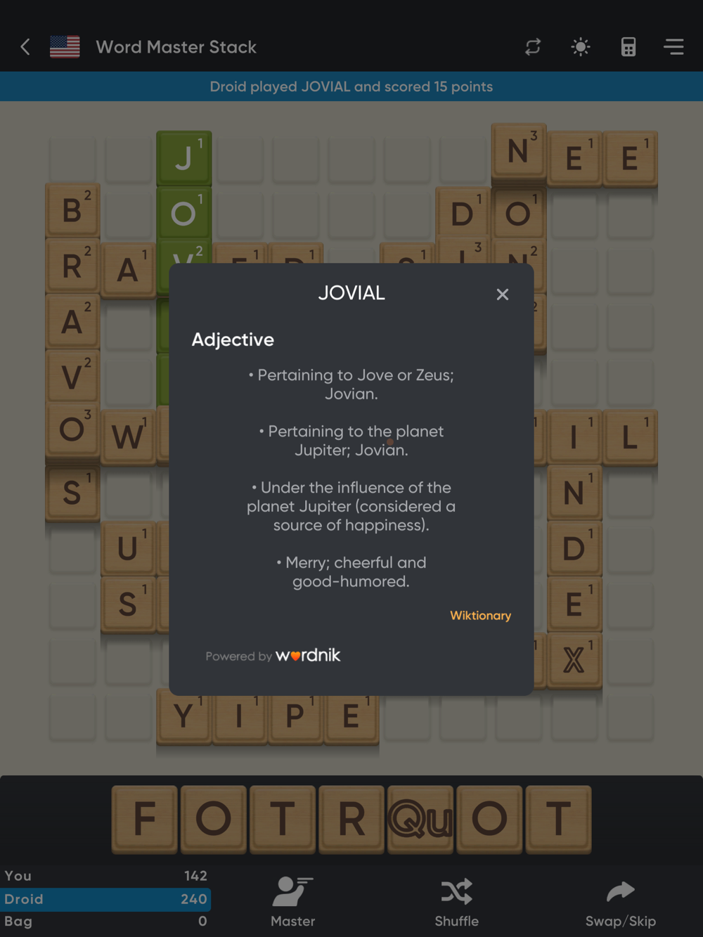 • Validation and scoring of words as you place them on the board