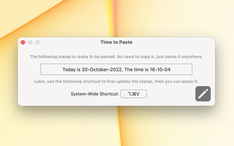Paste the current date and/or time anywhere you like, Easily. • No copy-paste.