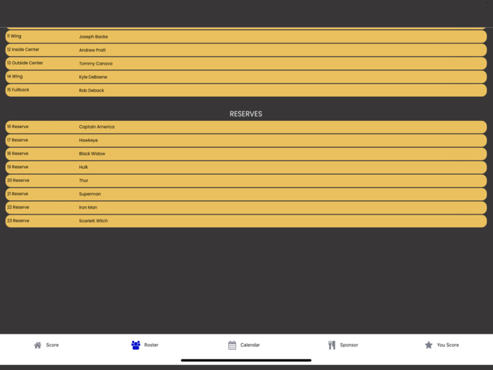 This is the Fan App for the Iowa State Rugby Team which allows you to keep up on the score, who is in the game, and a calendar for all Iowa State Rugby Games.