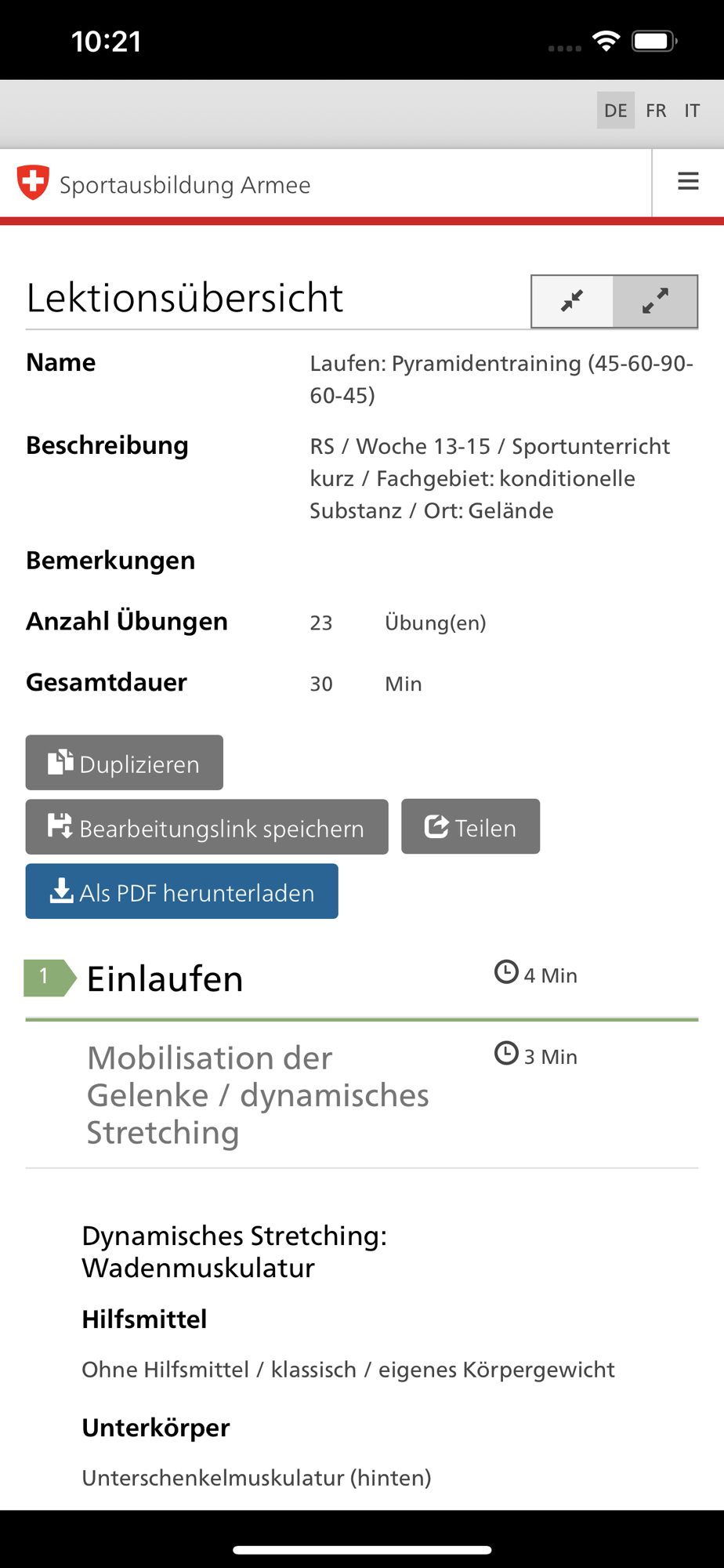 Das Kompetenzzentrum Sport der Armee (Komp Zen Sport A) trägt die Verantwortung für die Sportausbildung der Schweizer Armee. Im Rahmen der Möglichkeiten sollen die Angehörigen der Armee die notwendigen körperlichen Fähigkeiten für den militärischen Einsatz in Bezug auf ihre Funktion erhalten. Zudem soll Sport als Ausgleich zum militärischen Alltag erlebt werden.