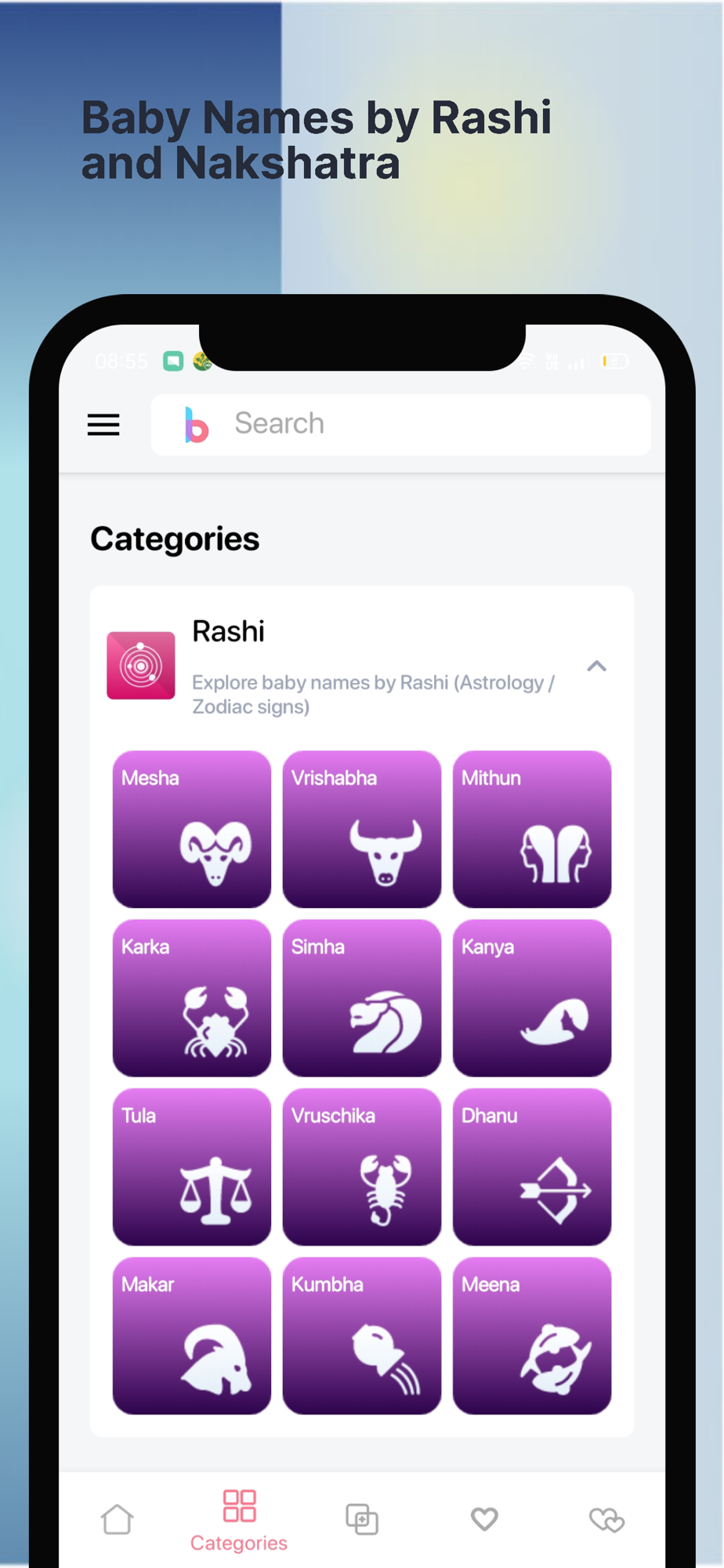 The app also provides baby boy names and baby girl names by Rashi (Zodiac Sign), Nakshatra, Numerology & Astrology.