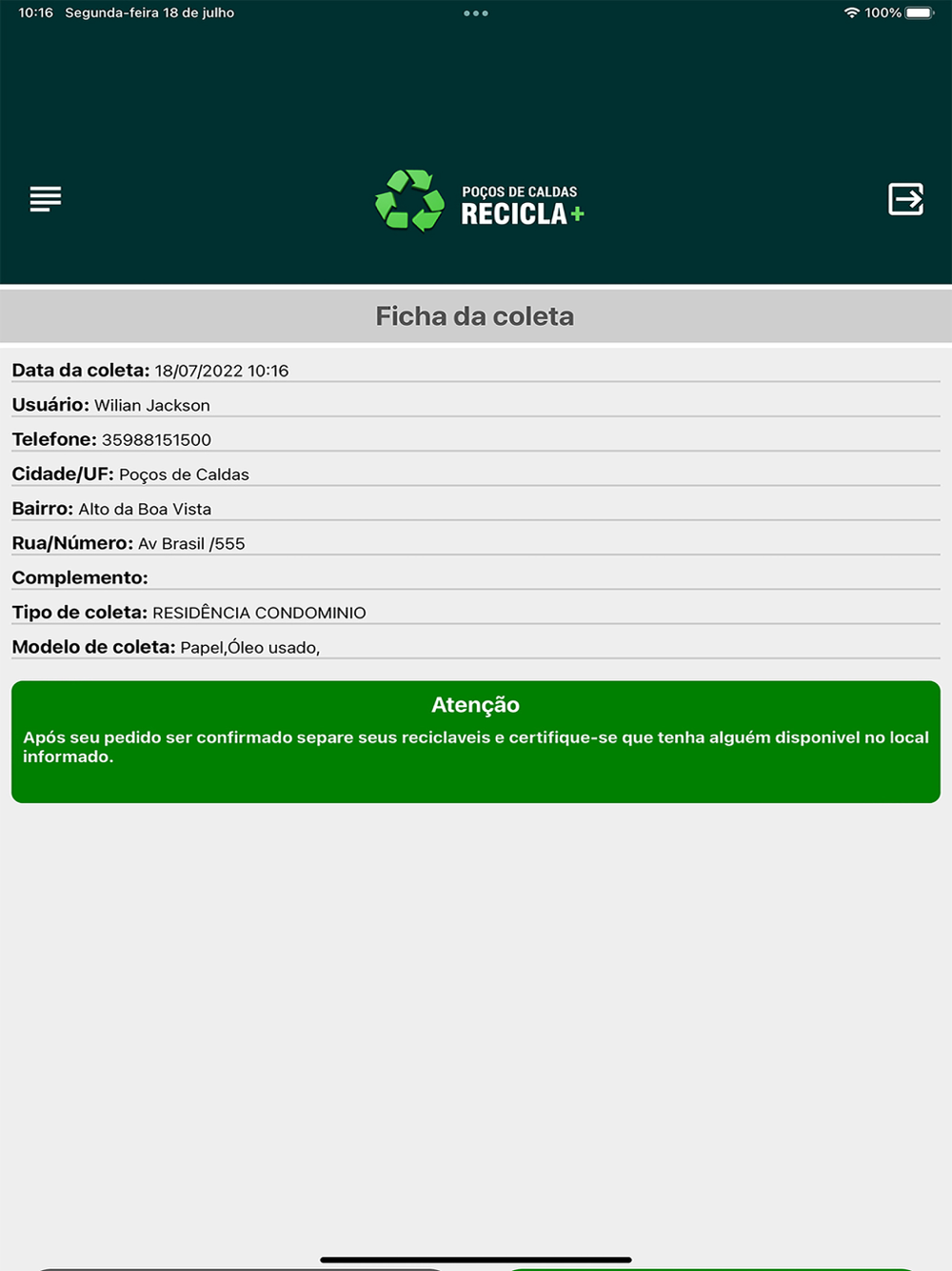 Aplicativo para auxiliar a coleta seletiva em Poços de Caldas.