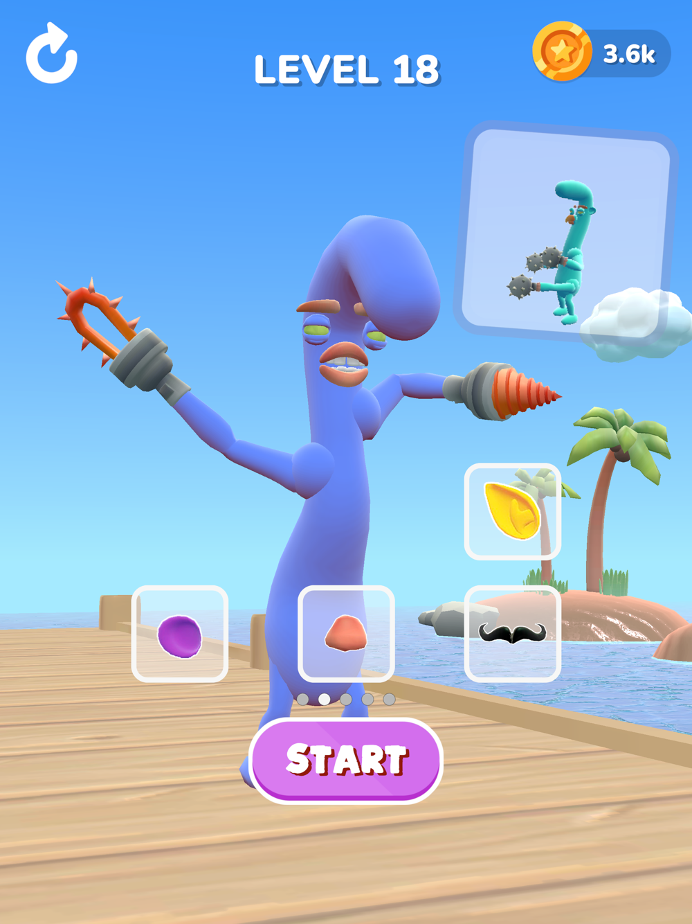 The most stylish and cool combat monster constructor in the world. Create your own unique fighter and become the star of the arena. Immerse yourself in the atmosphere of a deadly battle. Create the form of your fighter and set weapons on him. Customize your character - add a nose, ears, hats and mustache.