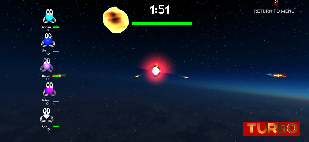 Enjoy the vivid backgrounds of space, explore the depths of the ocean and glide through clouds. Battle other spacecrafts to complete the mission of destroying them and the fiery comet!