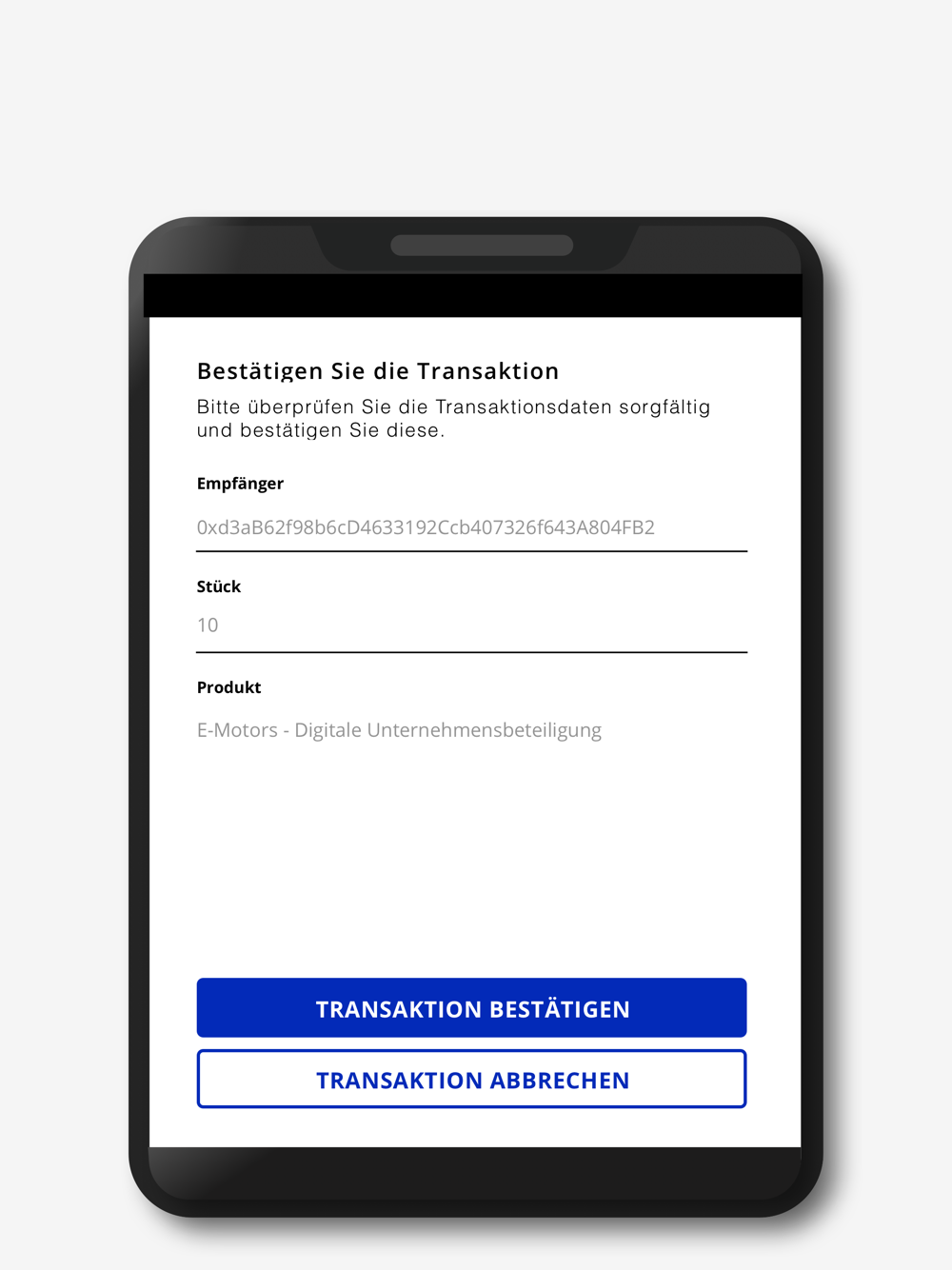 The Eterna Safehold App provides an extra layer of security for the digital securities held in your Eterna account. With this Eterna Safehold App app as a second factor, you confirm the secure transfer of digital securities.
