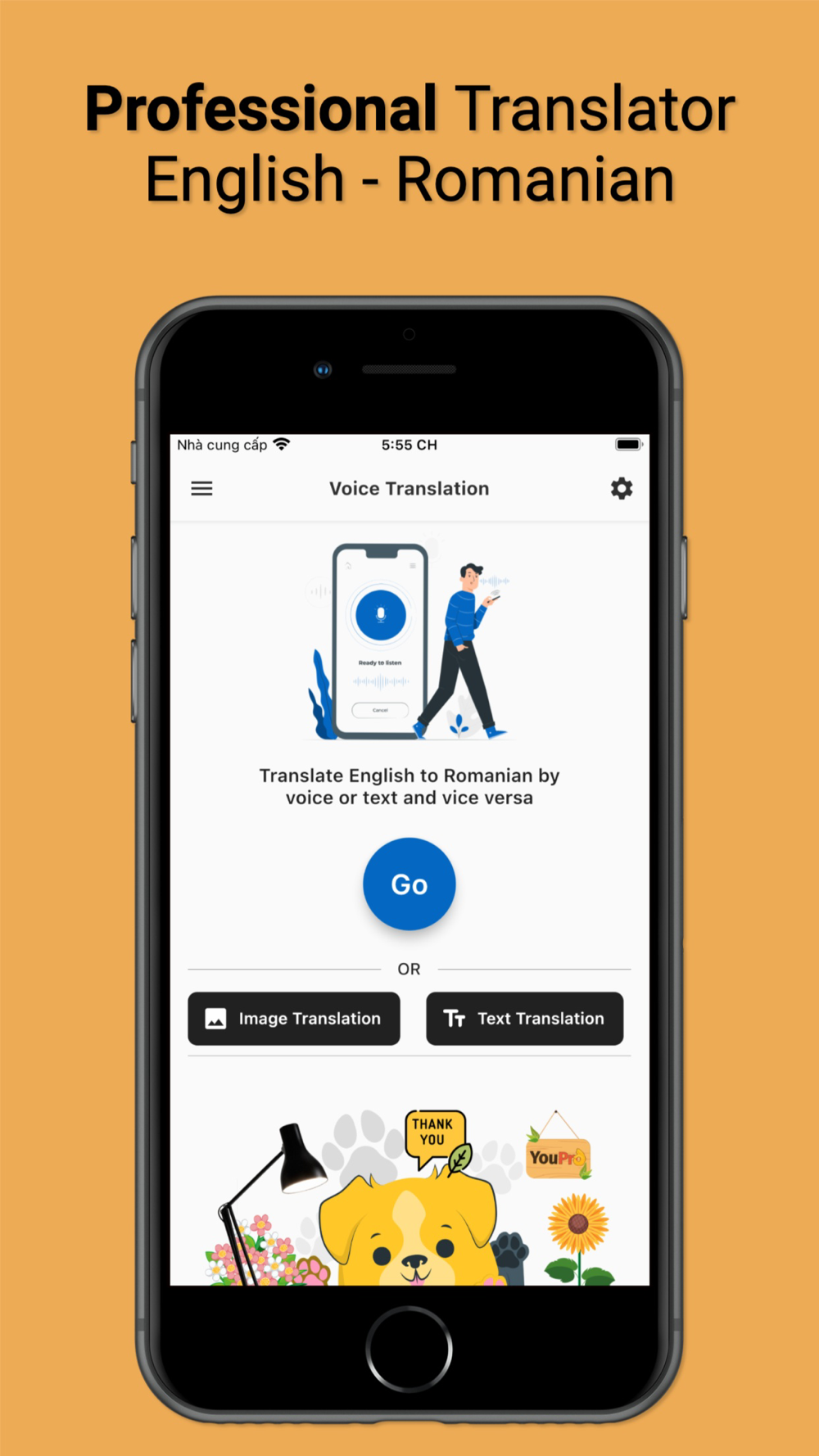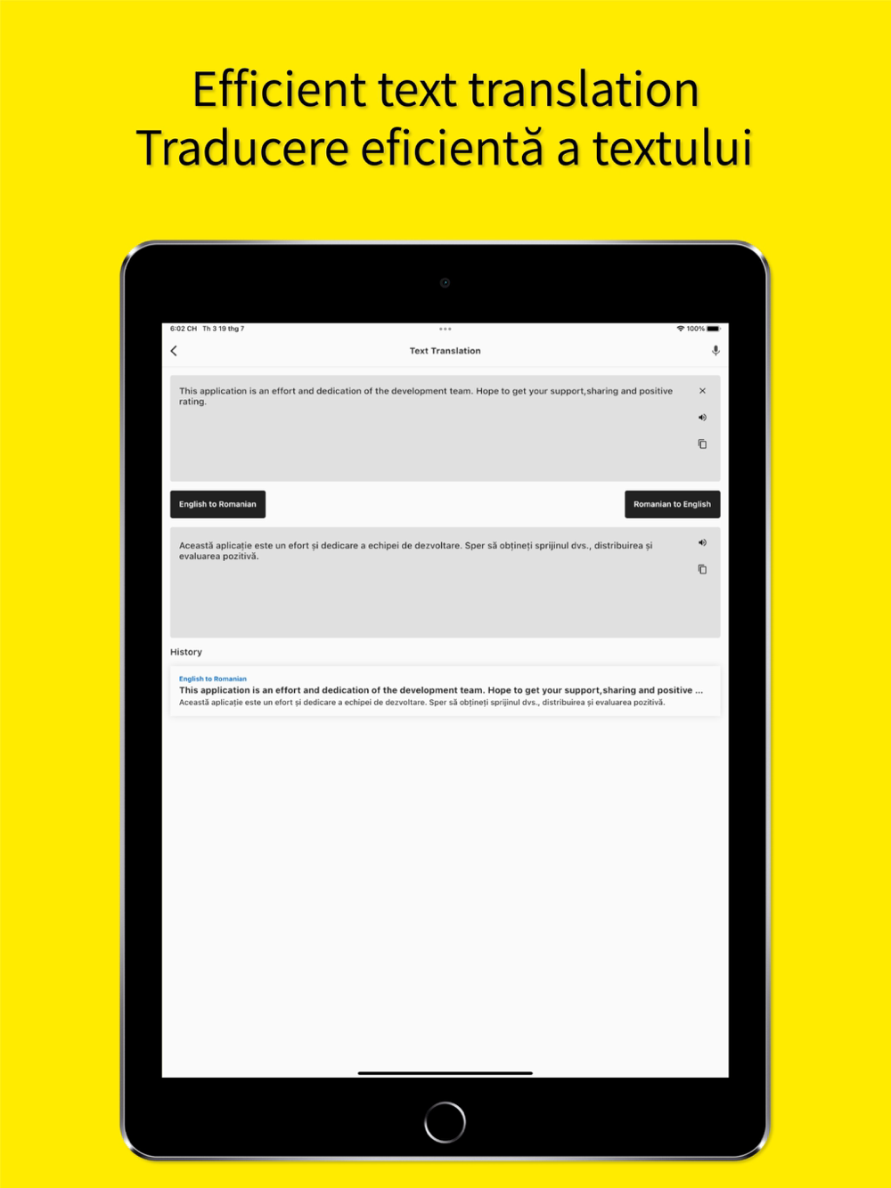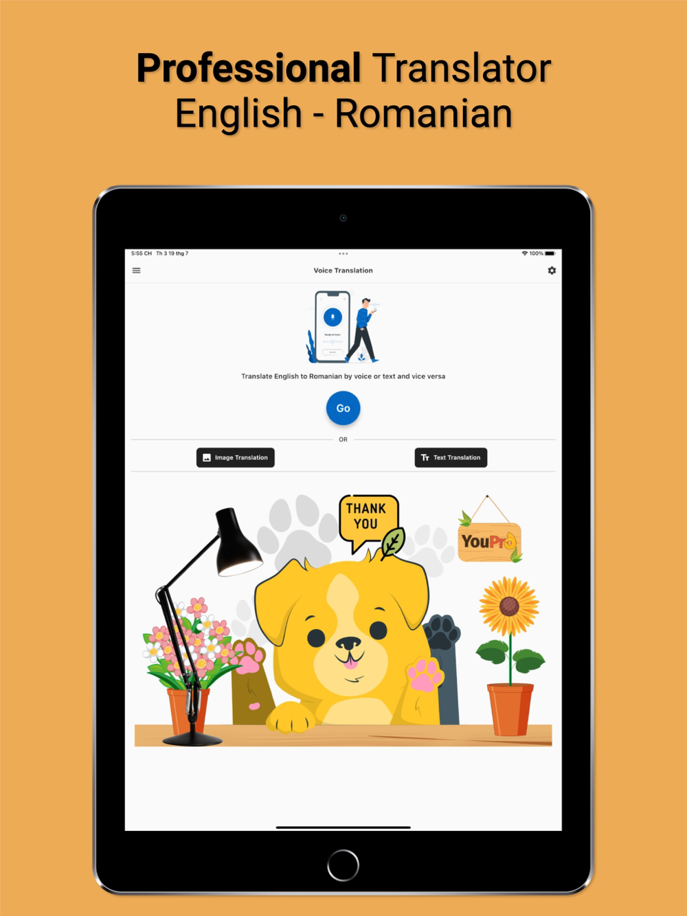 English to Romanian Application is a voice, text and image translation application from English to Romanian or Romanian to English, very convenient and easy to use, useful for users.English to Romanian allows you to translate all documents, voice, images with the language is English or Romanian. This application is a product of YouPro.