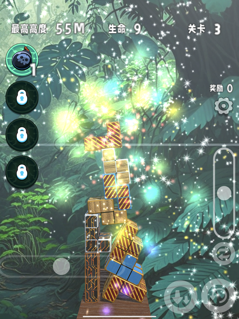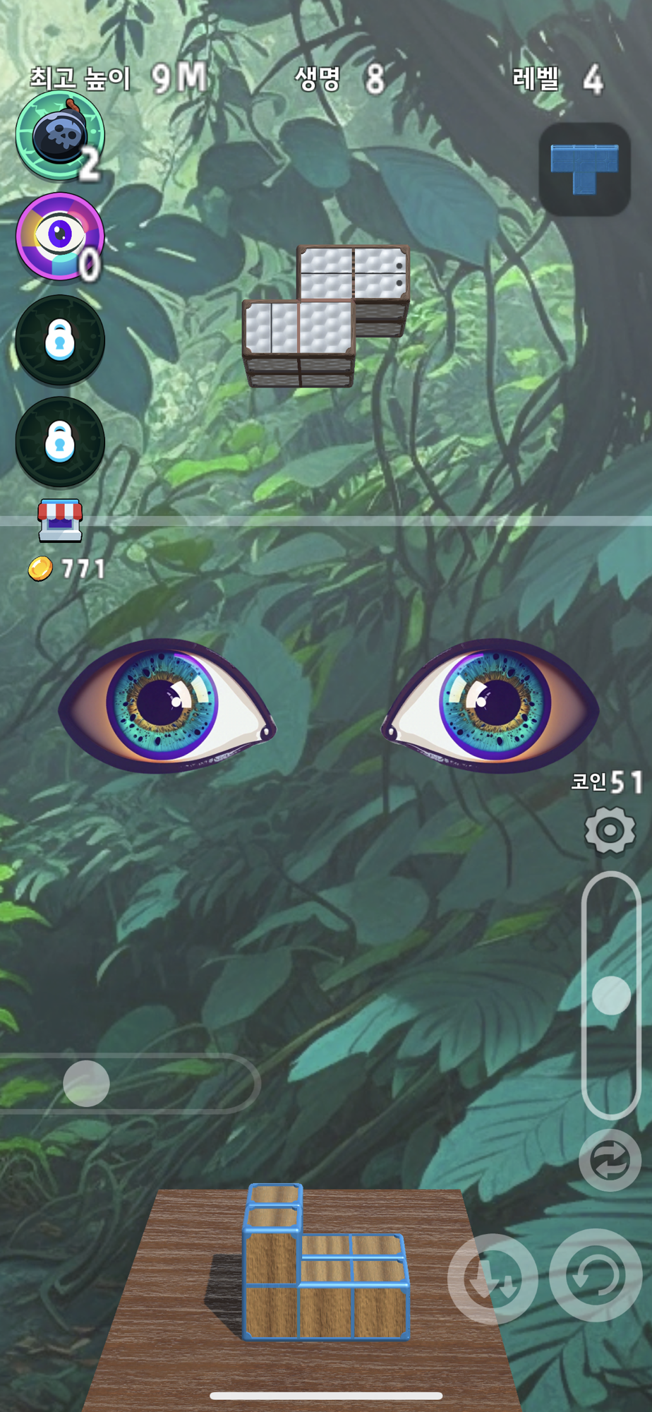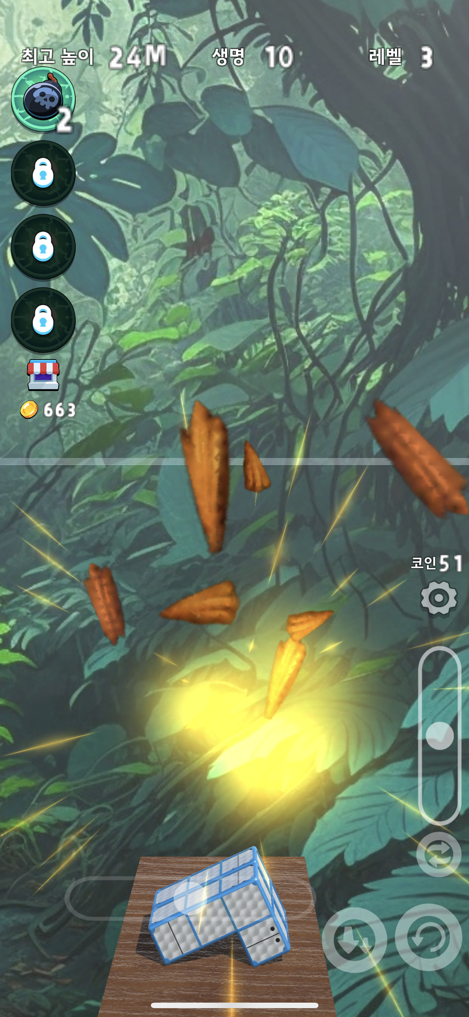 게임에서 블록을 잘 쌓아서 목표 높이에 도달하면 스테이지를 클리어할 수 있어요.