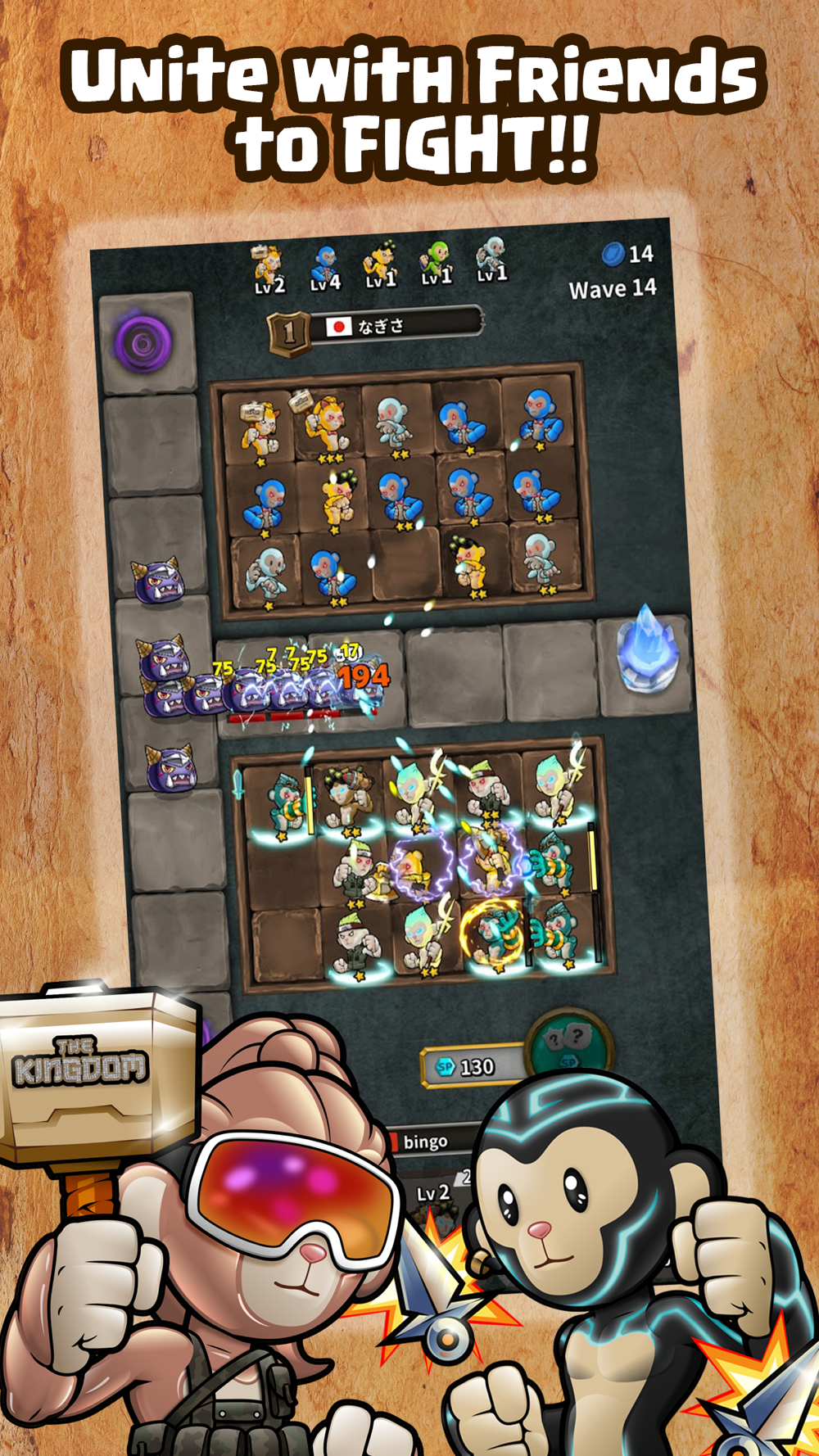 Lead your Monkey Legend Heroes into the arena to Defend the Kingdom from the invasion of emerging enemies and random bosses.
